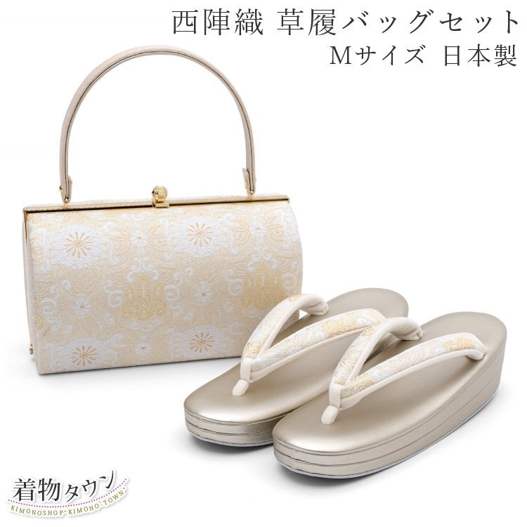 | サイズ | Mサイズ 【草履】 長さ:約 23.5cm 幅:約 7.8cm 高さ:約 5.5cm 【バッグ】 幅:約21cm 本体高さ:約12cm 持ち手:約12cm まち:約11cm |