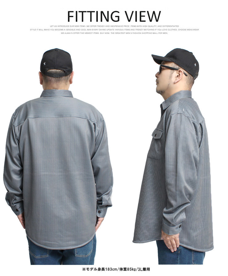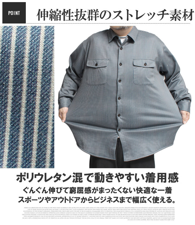 | 商品名 | 【新品】 3L ストライプ 長袖シャツ メンズ 大きいサイズ 伸び伸び らくちん ストレッチ チェック ストライプシャツ |