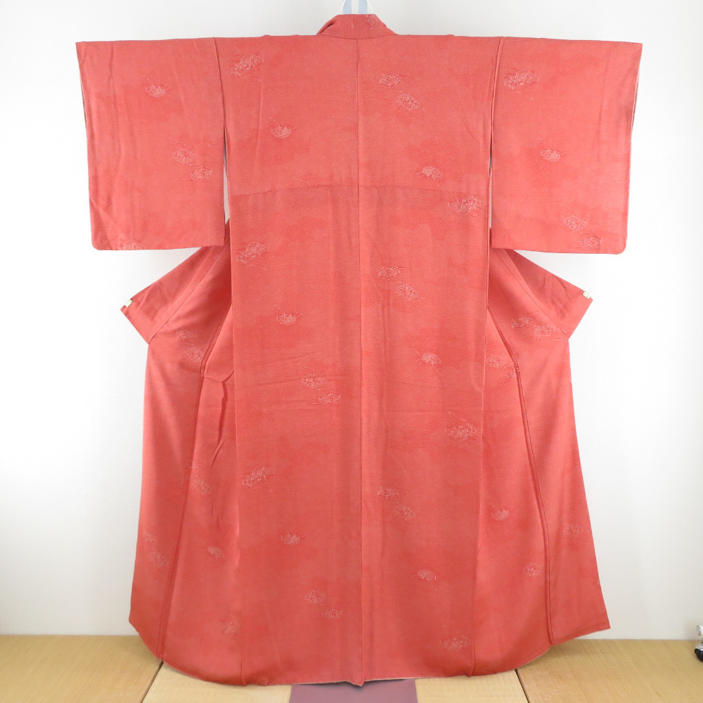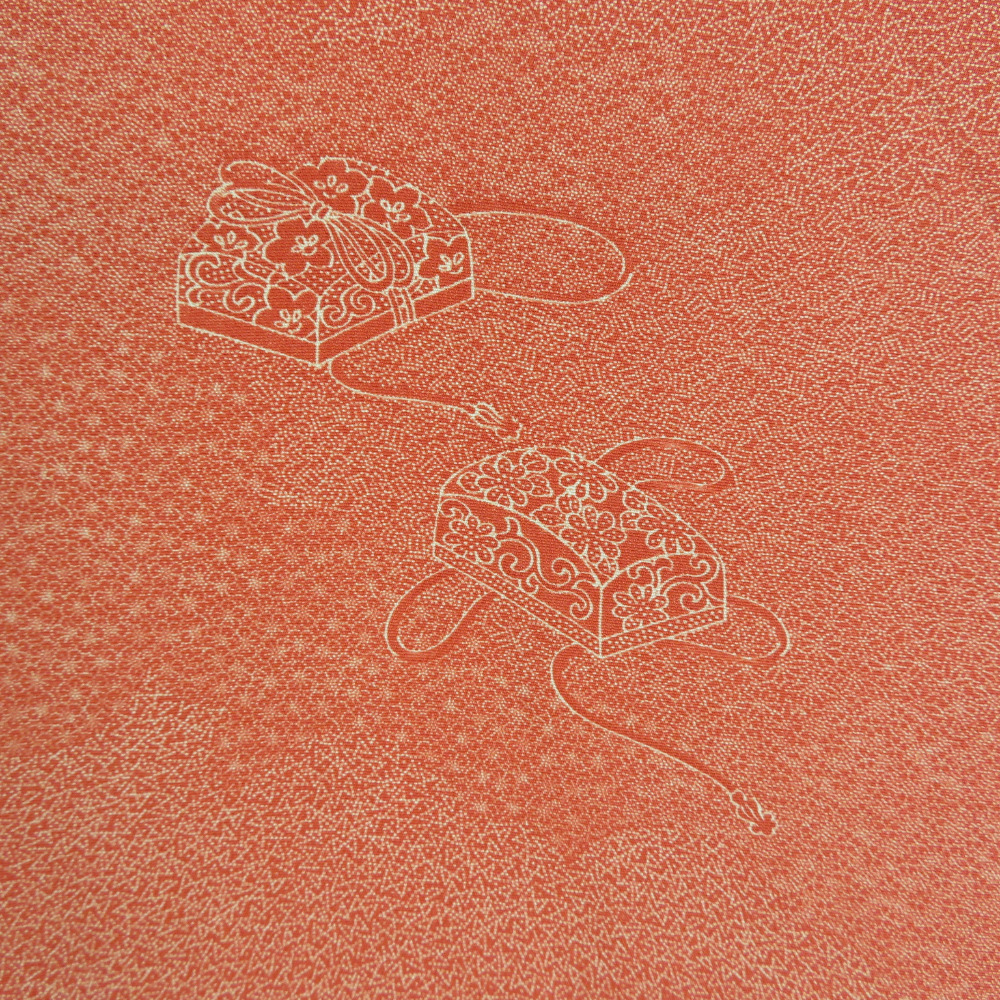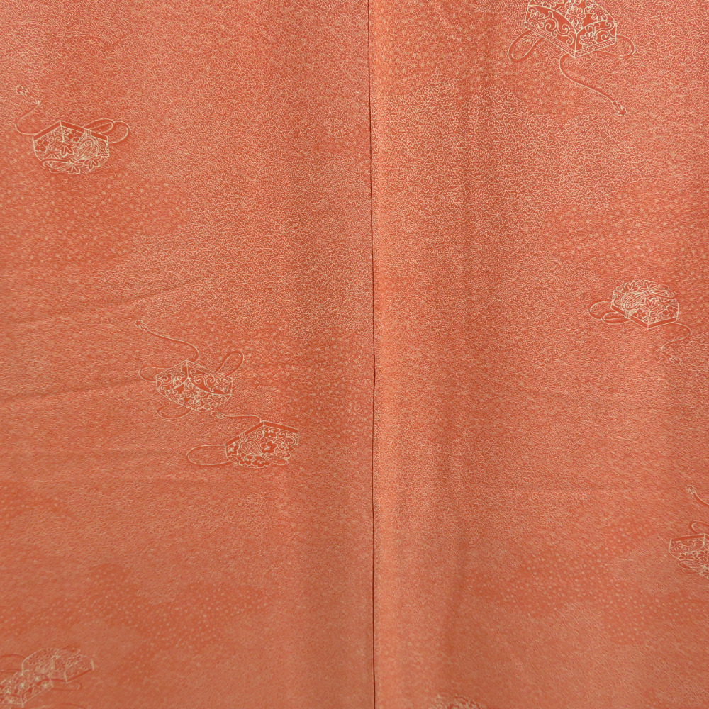 | 江戸小紋 箱模様 オレンジ色 正絹 袷 広衿 仕立て上がり着物 身丈156cm |