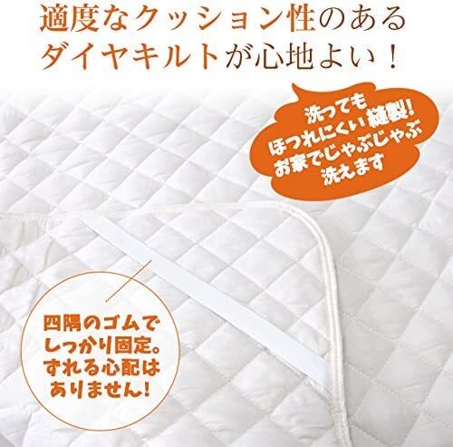 | 商品説明 | 【商品サイズ】 140x200cm (ダブル) 【マットレスを守る!】マットレスの上の敷いてお使いください。汗や汚れからマットレスを守ります。四隅のゴムでしっかり固定してくれるのでズレにくくストレスフリー。 【洗える】ご自宅の洗濯機で丸洗いが可能です。乾きやすい素材なのでこまめに洗えて清潔にお使いいただけます。 【オールシーズン】季節を問わず1年を通してお使いいただけます。 【程よいクッション】ダイヤキルトのクッションが程よく、見た目もオシャレ!