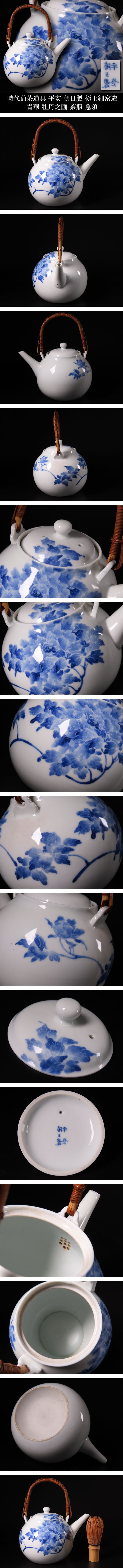 【ONE'S】時代煎茶道具 平安 朝日製 青華 牡丹之画 極上細密造 茶瓶 急須 茶注 茶道具 古美術品 | |||