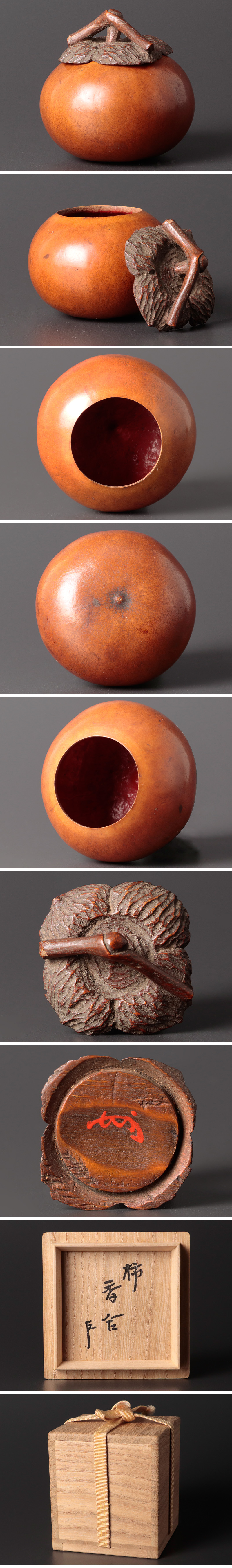 細部まで丁寧に作られた柿の香合。どこか郷愁を感じさせるような、風情ある逸品です。 ★商品は即中斎書付の作品である事を保証致します。 |