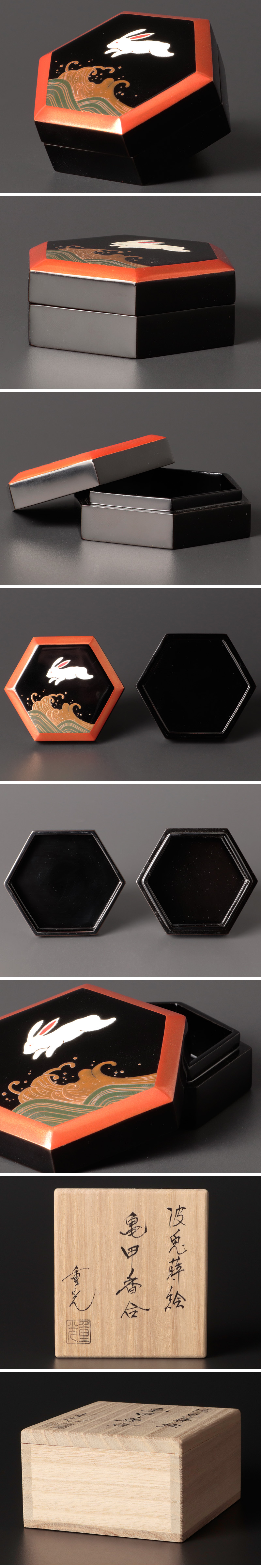 【古美味】大多尾重光 波兎蒔絵 亀甲香合 茶道具 保証品 |