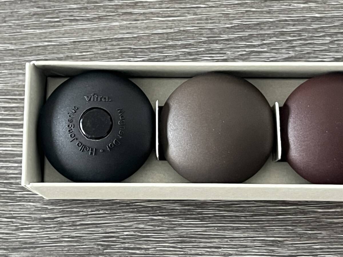 ヴィトラのマグネットドッツです。小石を思わせるオーガニックな形の「マグネット ドッツ」は、強力なマグネットがプラスチックでコーティングされています。それぞれ調和のとれた絶妙なニュアンスカラーです。サイズ:37,5 H17デザイナー:ヘラ・ヨンゲリウスデザイン年:2016未使用品ですが外箱にキズ汚れがある場合が御座います。