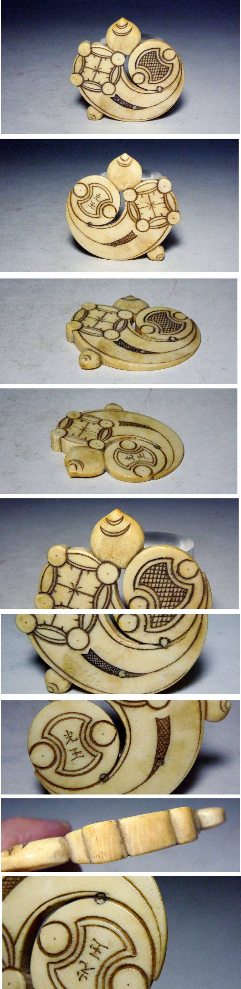 【 古作 宝珠彫平根付(光玉在銘) 】 | |