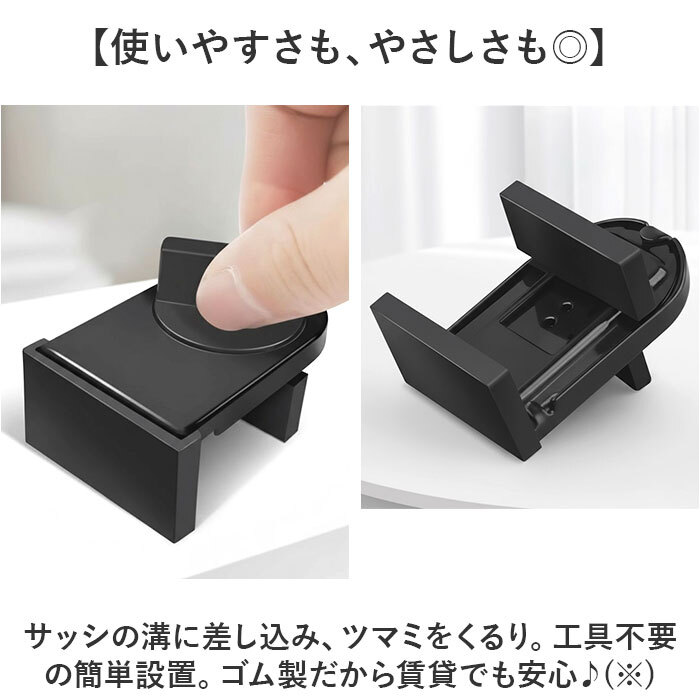 | 商品説明 | ・・【開けたい窓に、ちょっとの安心】 ・お子さまやペットの安全対策に!窓を開けても安心な「窓ロック 防犯 子供」が登場。 ・【大切な家族の事故防止に】 ・小さなお子さまの転落や、ペットの脱走を防ぎ、窓辺のヒヤリを減らす安心の仕組み。 ・【換気しながらロック】 ・浴室やトイレの窓を少し開けたままロック。湿気対策にも役立つのがうれしいポイント。 ・【使いやすさも、やさしさも◎】 ・サッシの溝に差し込み、ツマミをくるり。工具不要の簡単設置。ゴム製だから賃貸でも安心♪ ・(※)サッシの幅のサイズをご確認ください。 ・【家の中に、安心の一手】 ・外からの侵入をブロック!上下2ヶ所設置することでさらに防犯力アップの頼れるアイテム。 |