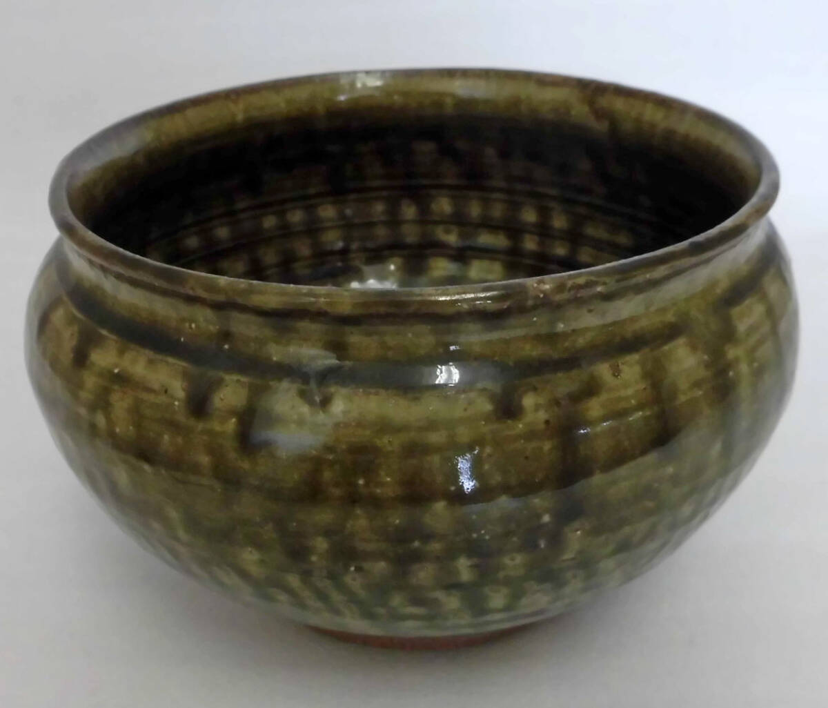 | 品名:南蛮釉流し 建水 茶道具 作家:日本製 寸法:口径≒16.5㎝ 胴径≒19㎝ 丈11.2㎝ ≒1100g 状態:使用感ない美品です。 できるだけ説明いたしますが、写真でご判断ください。写真の色の誤差はご容赦ください 出品者の主観です:釉薬の流れなどお楽しみください。花器にもお洒落です。 | ||