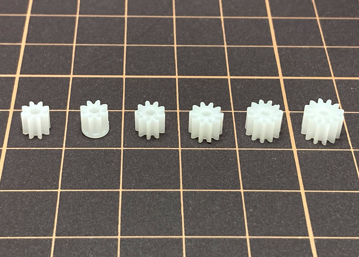おもちゃ用のプラスチック製のピニオンギアのセットです。