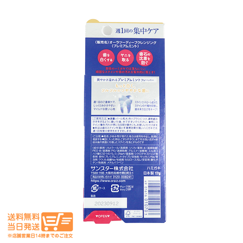 歯の白さにこだわりたい人に!週1回の歯の集中美白ケア。頑固なステインやニオイのもとまで、すっきりディープクレンジング。プレミアムミント16種類の天然成分(香料)配合爽やかさ溢れる上質な香り