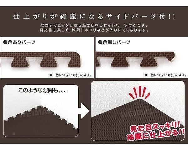 商品コード:FCA0230M ★商品仕様 カラー: ブラウン/ベージュ 本体サイズ(約): 幅30×奥行30×厚み1.0cm (※1枚) 素材: EVA樹脂 ★商品内容 ジョイントマット ×64枚 ├ブラウン (32枚) └ベージュ (32枚) サイドパーツ(角付きパーツ64本、角なしパーツ64本) ★注意事項 ※材質の特性上、厚みに多少の誤差がある場合がございます。 ※マットの上での暖房器具の使用、及び床暖房の使用は避けて下さい。 ※EVA樹脂の臭いが最初はある程度しますが、人体には影響ありません。 臭いによる返品はお受けできませんので、臭いの気になる方はその旨をご了承の上ご落札をお願いいたします。 ※重量物を載せますと、マットが凹み変形する恐れがあります。 ※サイドパーツ単体の販売は行っておりません。 サイドパーツをカットして使用する際はご注意下さい。 ・商品は、モニターによって色合いが異なって見える場合があります。 仕様・デザインは改良のため予告なく変更することがあります。 ▼検索キーワード ジョイントマット 3畳 6畳 8畳 12畳 防音 騒音 吸収 ジョイント マット 赤ちゃん クッションマット フロアマット パズルマット プレイマット キズ 傷 防止キッチン リビング 子供部屋 キッズ ベビー ペット 人気 おすすめ ピックアッププラザ PICKUP PLAZA |