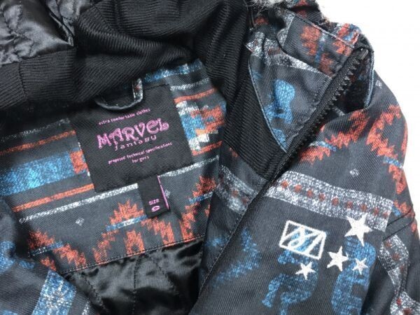 MARVEL fantasy for girls スポーツ スキー スノボ エスニック ネイティブ柄 アクリルファー装飾 総柄 中綿 ジャケット レディース S 黒/青です。| 出价者 | 信用 | 价格 | 时间 |