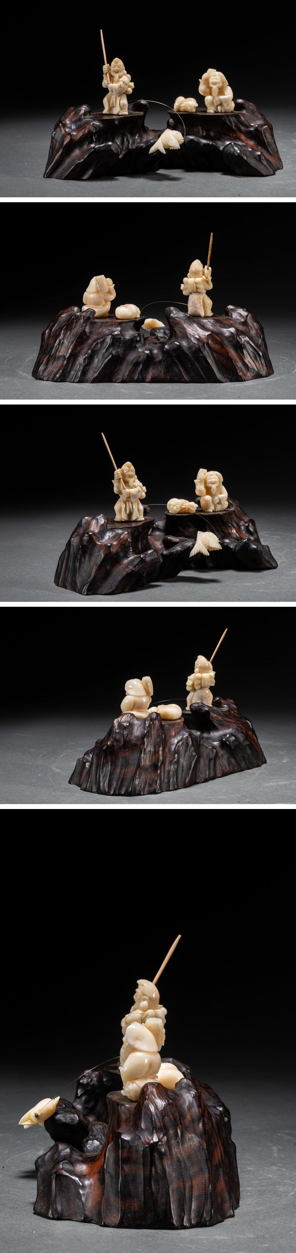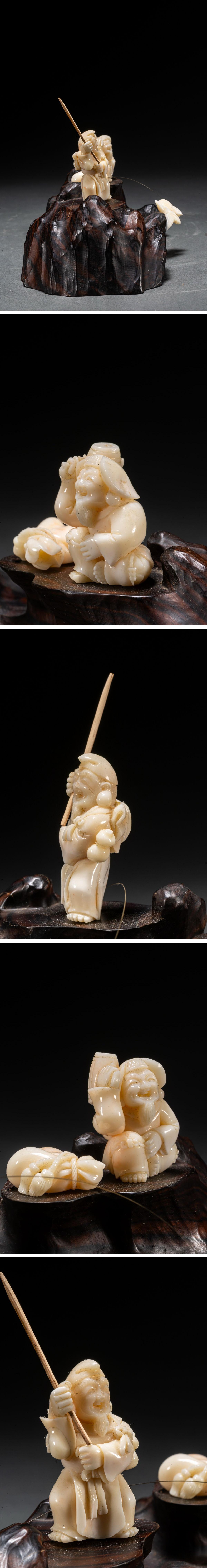 【雲錦】某有名オークション購入 時代物 紅珎材 大黒天・恵比寿造像 古置物 古美術 時代コレクション7L9-49S2