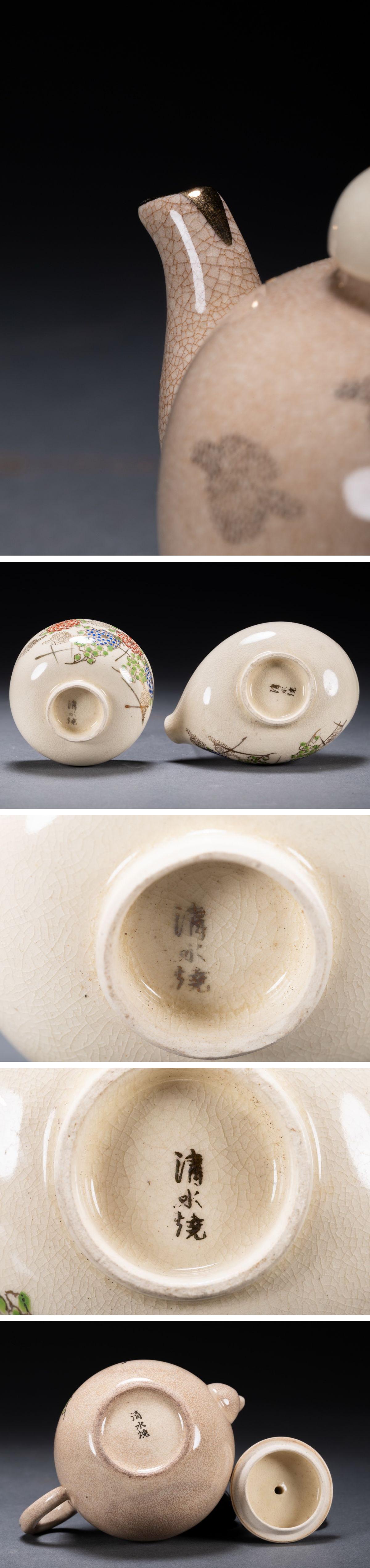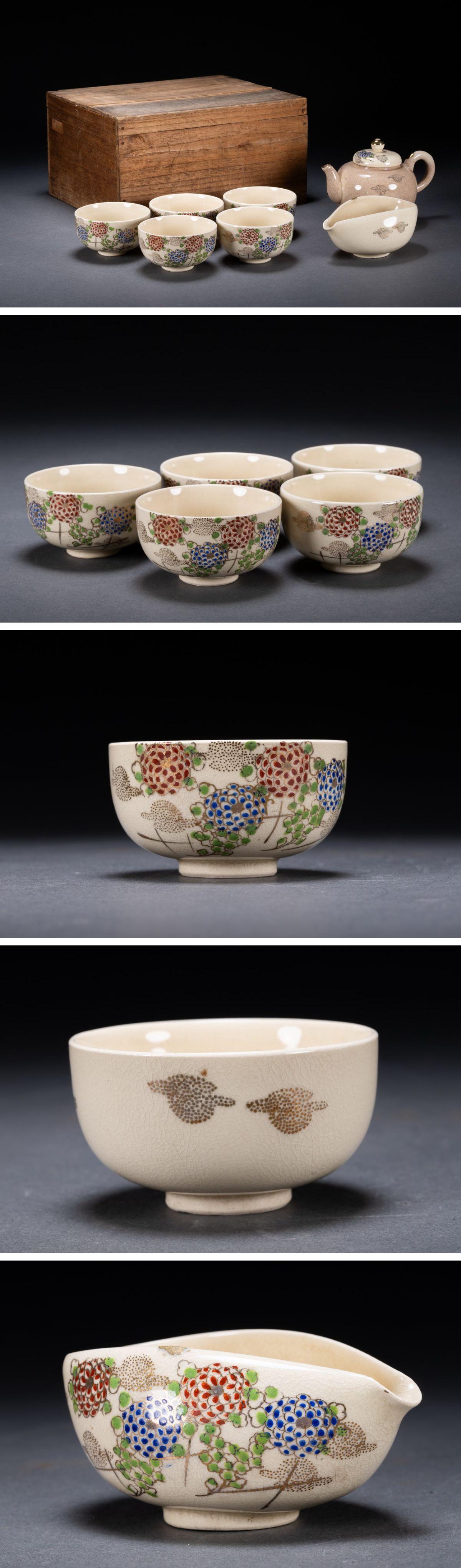 【雲錦】清水焼 在銘 色絵 花卉図茶器揃い 茶道具 直入識箱 真作保証 美術品 7L10-132S05