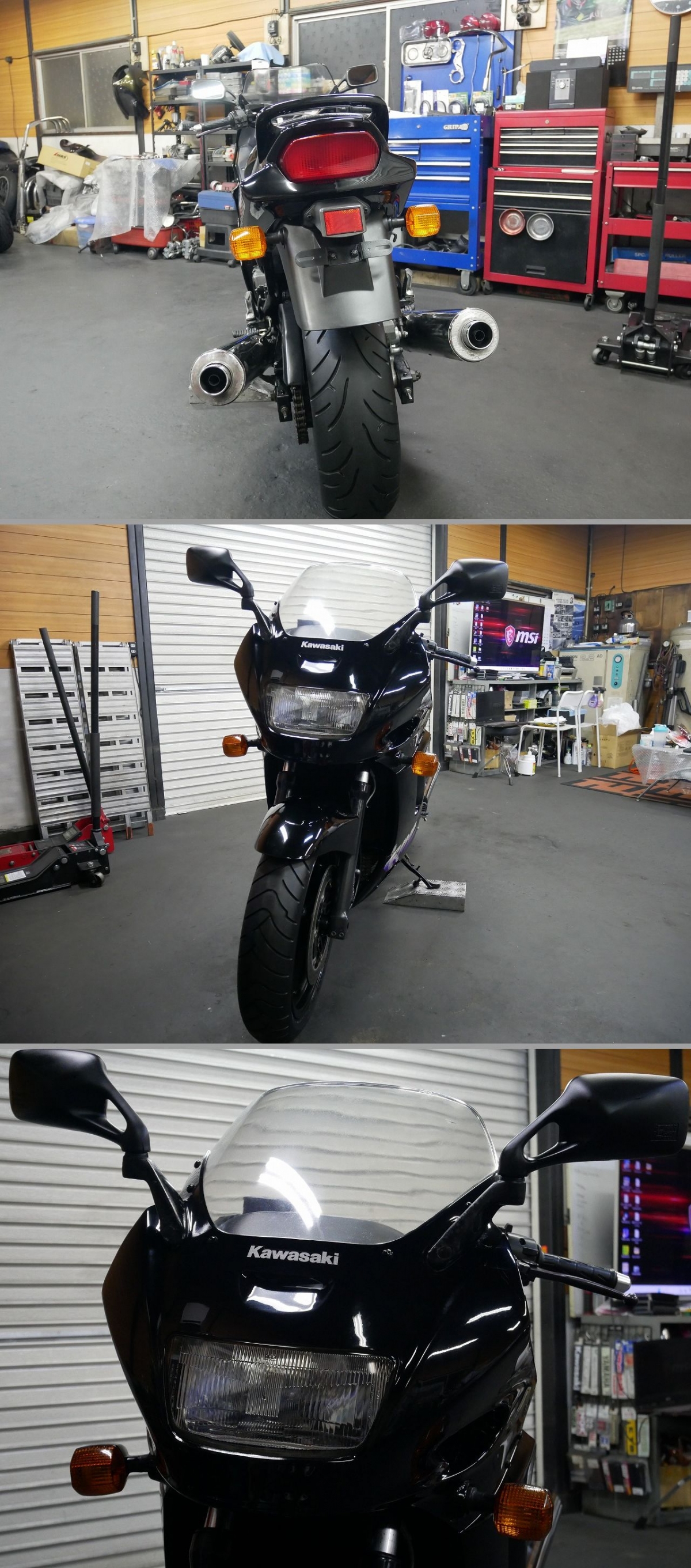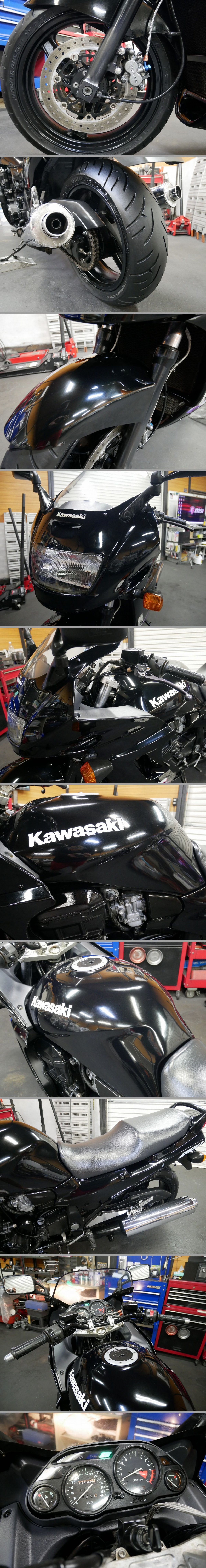 内容 エンジン 足回り 外装等 全体に状態も良く綺麗です☆☆程度良好車☆☆ | 中古車の為小傷 経年変化 消耗 タッチペン跡 カスタム変更箇所等はご理解ご了承下さい。 エンジンセル一発にて始動OK!!絶好調!!心地よい静かなエンジン音です。動画をご覧ください。☆☆☆ kawasaki GPZ1100です。スポーツツアラーをお探しの方にお勧め出来る一台です。 只今室内保管中!!是非大事に乗って頂ける方にお譲りいたします。 走行確認済み(車両のコンディションを保つ為走行いたしますので、若干走行距離が伸びる場合もございます)ご了承くださいませ。 名義変更後直ぐにお乗り頂けます。是非ツーリングや街乗りをお楽しみください。 当方の見落としや説明不足も有りますので、疑問や不安な点がある場合や 細部を気にされる方は、オークション終了前に現車確認してください。 写真で見ると光の反射で傷に見えたりする場合も御座いますので気になる方はご質問下さい。 現車確認の際は、下記項目(①~⑤番)を記載の上当方のメールアドレスまでご連絡ください。 新規IDの方や評価が著しく悪い方で、ご購入を検討されている方は購入意思確認の為gensyakakunin1@gmail.comまで下記の項目を 記載の上ご連絡下さい。 ①タイトル ②お名前 ③ご住所 ④電話番号 ⑤ヤフー ID ご連絡のない場合は入札を取り消す事がありますので予めご了承下さい。 遠方で現車確認が不可能な方等は写真やご質問で判断して頂き必ずご納得の上、入札参加 落札をお願いします。 お気持ちの良いお取引を心がけていますので、慎重なご入札落札をお願いします。 車両の全てを文章でお伝えするのは難いため動画や写真を複数掲載しております