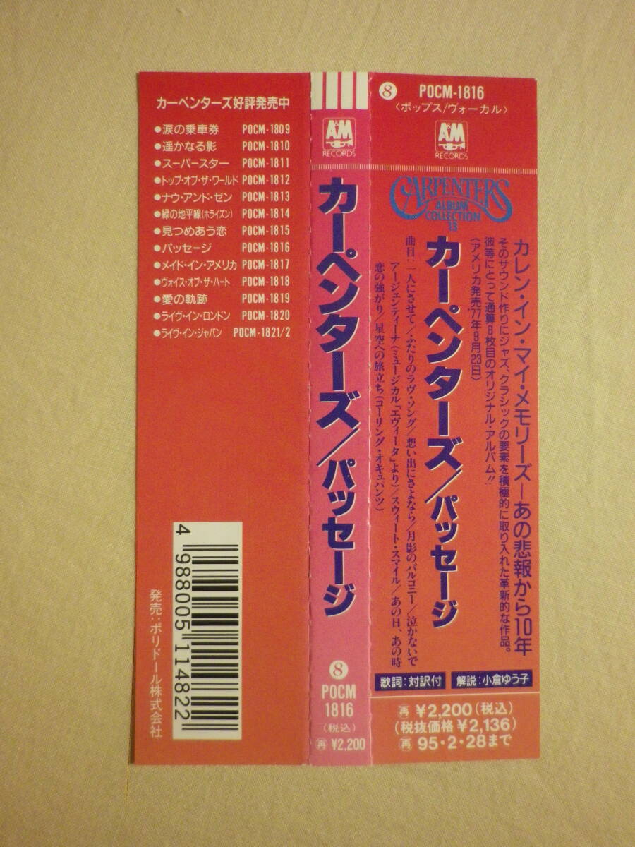 Carpenters/Passage(1977)1993年発売 POCM-1816| 出价者 | 信用 | 价格 | 时间 |
