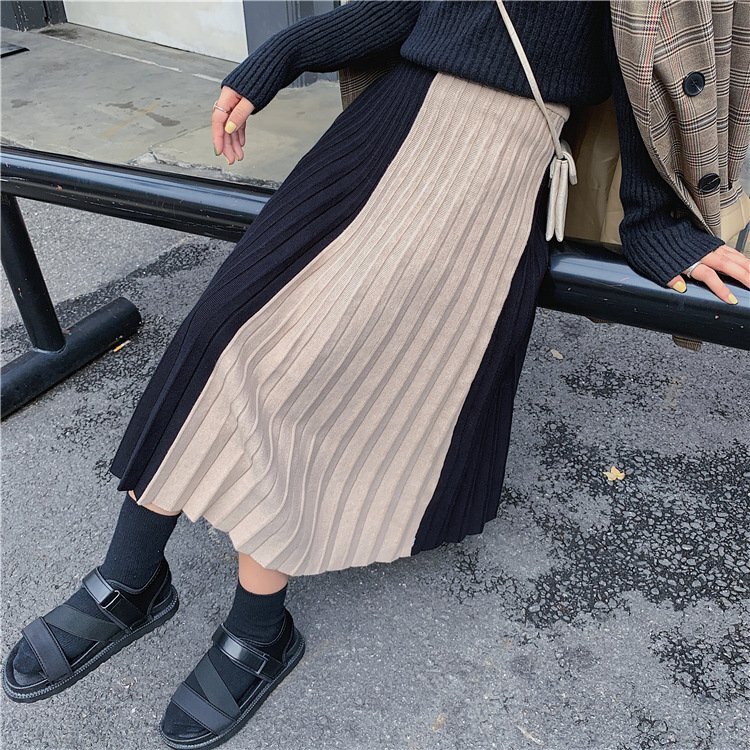 プリーツ スカート レディース ニット ロング スカート バイカラー 配色 ウエストゴム ミモレ丈 ハイウエスト フレア カジュアル★均ヤード [浏览原始页面]