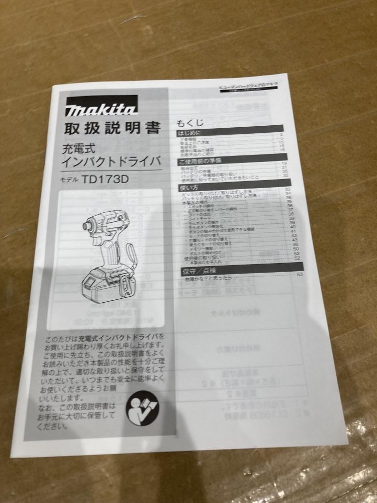 マキタ makita ■商品名 充電式インパクトドライバ ■型番 TD173DGXAB |