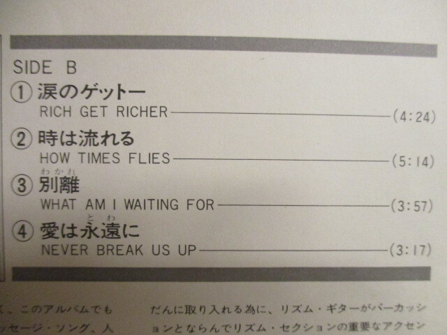 | [盤・状態]EX- [ジャケット・状態]VG++ [種類]1975/JPN/LP [備考]「Give The People What They Want」収録 Give The People What They Want4:14 Let Me Make Love To You4:21 Survival3:44 Where Did We Go Wrong3:40 Rich Get Richer4:24 How Time Flies5:15 What Am I Waiting For3:56 Never Break Us Up3:18 | ||