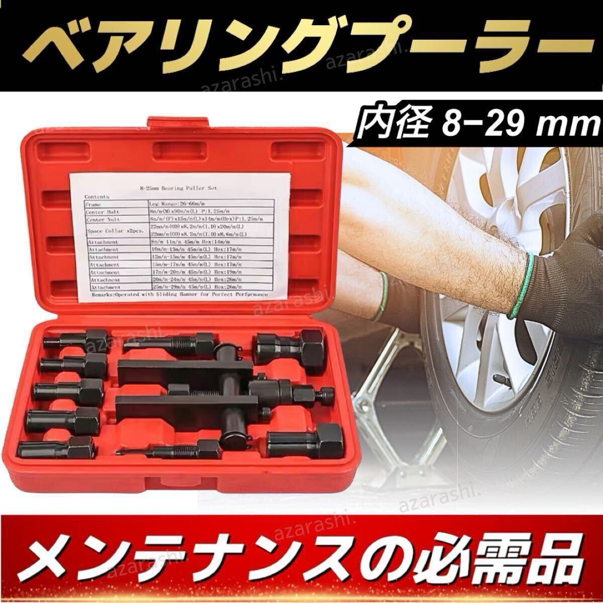 | 商品説明 | 数ある商品の中からご覧いただき誠にありがとうございます。 【状態】 新品未使用 多用途ベアリング交換ツールセット 車やオートバイ、機械の回転部に欠かせないベアリングを簡単に交換するために設計されています。 特に軸型ベアリングの取り外しに威力を発揮し、プーラーを使用することで、穴に埋まったベアリングもスムーズに取り出せます。 エンジンやミッションのオーバーホールにも対応しており、車種やメーカーを問わず、幅広くご利用いただけます。 ※ツールの表面には錆防止のためにオイルが塗布されています。ご使用前にオイルが気になる場合は、軽く拭き取ってからお使いください。拭き取った後は保管時に錆が発生しないようご注意ください。 【使用手順】 ベアリングにABをしっかりと固定します。 正しい位置にセットするとベアリングが固定されますので、Cを差し込んで準備完了です。 六角ボルトをレンチで固定し、14mmナットを時計回りに回すことでベアリングを引き上げます。 ●幅広い対応車種 このツールセットは、内径8mmから29mmまでのベアリングに対応しており、さまざまな車種での交換作業に対応可能です。 ●高品質クロムバナジウム鋼採用 高品質のクロムバナジウム鋼で作られており、耐久性と耐摩耗性に優れた合金を使用しており、 大きな力を加えても変形しにくく、長期間ご使用いただけます。 部品は専用ケースに収納され、コンパクトで場所を取らず、 紛失を防止します。 ●セット内容● 収納ケース ×1 本体フレーム ×1 センターボルト ×1 センターナット ×1 チャック ×7(8-11mm、10-13mm、12-15mm、15-17mm、17-20mm、20-24mm、25-29mm) ケースサイズ:220×150×45mm |