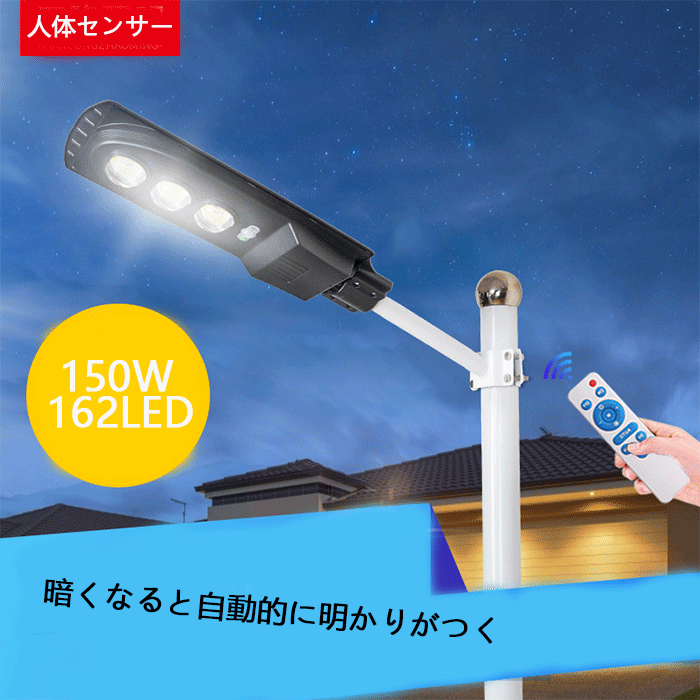 屋外照明 人感センサーライト防水 F6003 150W 1個 ソーラーライト 驚きの照射力 162LED 超高輝度 防犯ライト 庭先灯歩道灯