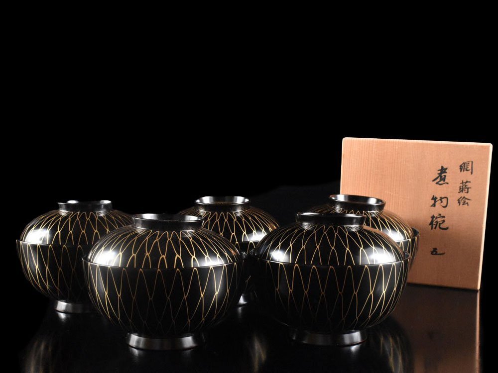 | 商品名 | 【雲】某老舗旅館買取品 木製漆塗 網目金蒔絵 煮物椀 吸物椀 5客 直径13.5cm 箱付 古美術品(懐石料理道具)CY939 CTDjuhg |