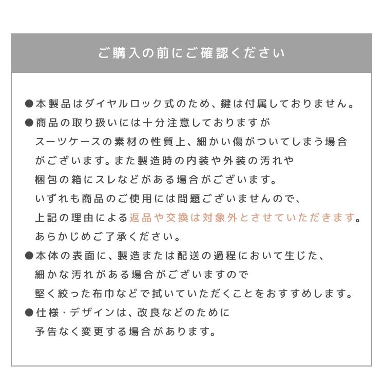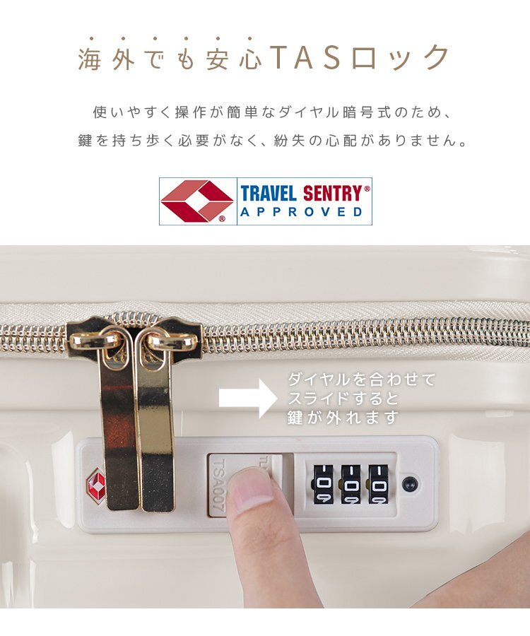 持ち運びしやすい軽量スーツケースです。 おしゃれなカラーバリエーションで気分を華やかに! 人気のパステルカラー6色展開! 高耐久、高品質のABS+PC素材を使用。 海外旅行でも安心して使える抜群の耐衝撃性で長くご使用いただけます! キャリーバーは使い勝手や身長に合わせて3段階の高さ調整が可能です。 コンパクトでありながら使いやすい内装! 荷物の飛び出しを防ぎ、小物類の仕分けに便利なポケット付きの間仕切りを両面に備えています。 施錠は操作が簡単なダイヤル暗号式! 鍵を持ち歩く必要がなく、紛失の心配もなし! 世界基準施錠TSAロック搭載! 全世界施錠した状態で荷物を預ける事が出来ます。 ■商品コード:PCBM20GY ■商品仕様 カラー:オリーブグレー サイズ(約): ・外寸 35×21×54cm ・内寸 49×33cm 重量(約):2.9kg 容量(約):39L 素材:アルミ合金 他 ■注意事項 ・TSAロック方式の商品には、鍵穴が付いていても鍵は付属しておりません。 (検査時に空港のTSA職員が専用の鍵で開錠するためのものです) ・商品は、モニターによって色合いが異なって見える場合があります。 ・仕様・デザインは改良のため予告なく変更することがあります。 ■保障期間 7日間 ※商品到着後7日以内の初期不良・破損のみご対応させていただきます。 【新品未使用品です】 |