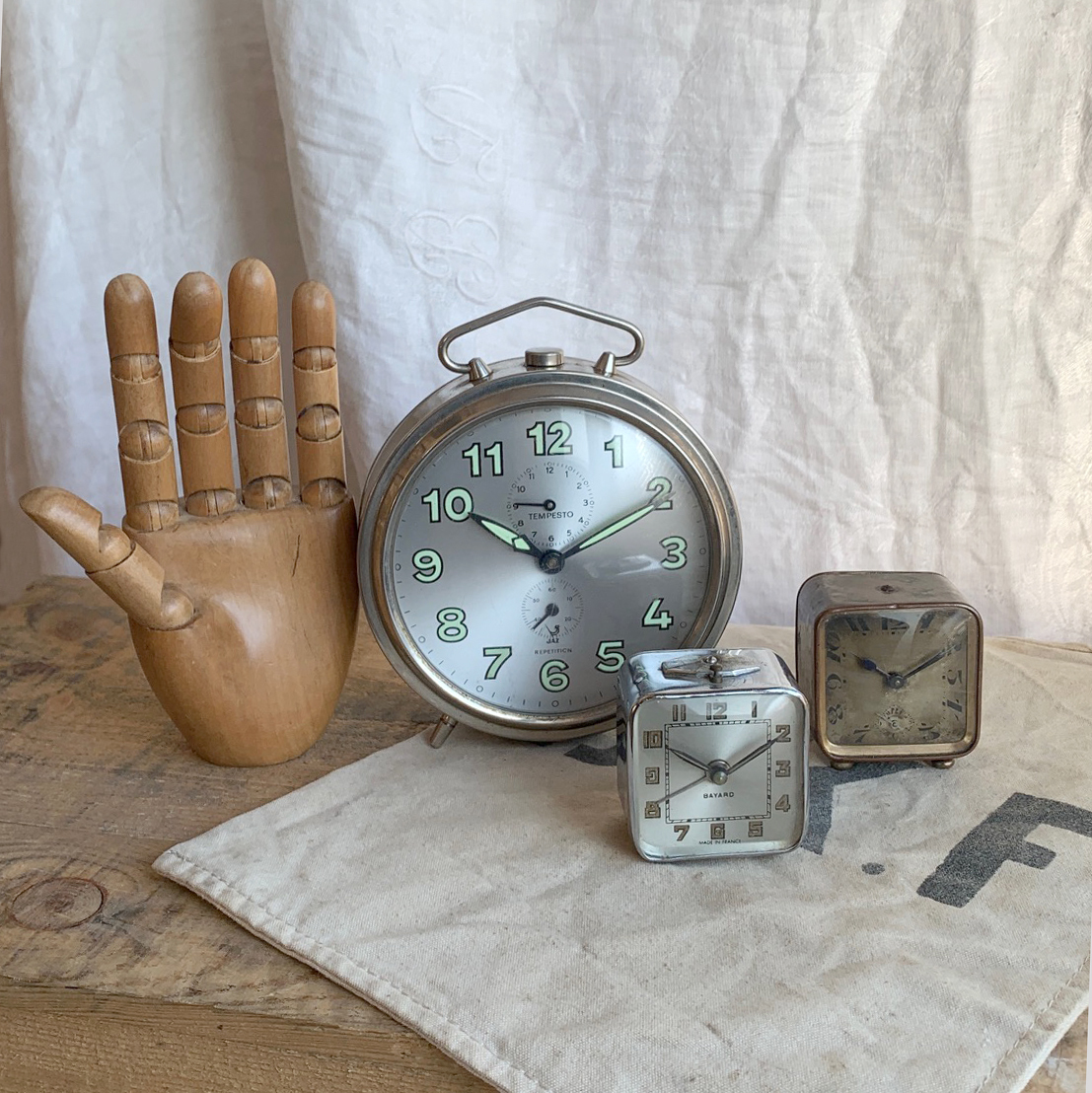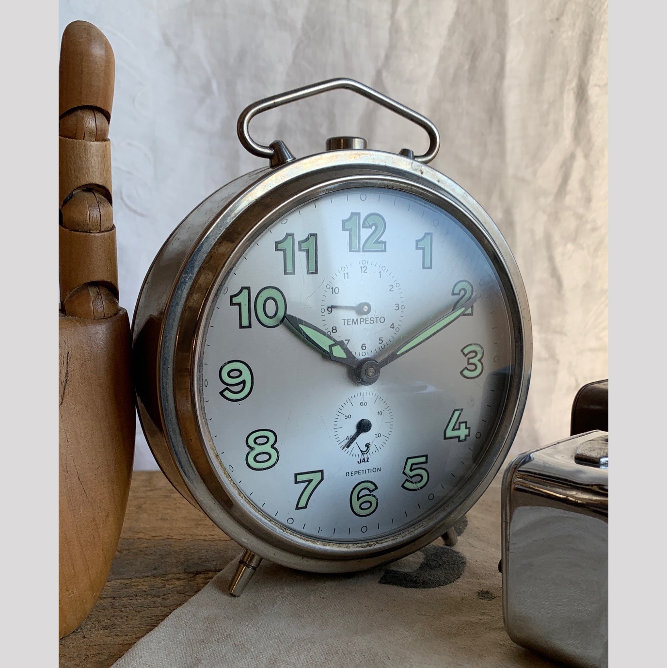 PayPayフリマからご覧のお客様 説明欄に追加画像を掲載している商品がございます PayPayフリマからではご覧いただけません の『商品詳細を見る』から追加画像をご確認ください 表示価格は、1点の価格です フランス 1970s JAZ ジャズ モデル名「REPETITION」1977-1989s インダストリアルな無骨な風合いが良い目覚まし時計 メタル製 お色はクロームシルバー 時刻、アラーム、日差調整、ゼンマイ、ずべて稼働いたします 時刻のずれはほぼございません 針と時刻の数字には暗闇でも視認性の高い蓄光塗料が使用されています これからも末長くお楽しみいただけるお品です ※撮影用の小物やその他の商品は含まれません サイズ:直径13.5cm ハンドル含む高さ16cm 厚5.5cm 他にも多数出品していますので是非ご覧ください ホームページもございますので、よろしければご覧ください -------------------------------------------------------------------------------------------------- ・古物と十分ご理解の上落札をお願いします ・撮影に使われているその他小物はお取引に含まれません ・新規の方は入札前に質問欄からお問い合わせ下さい ・落札後のキャンセル、返品(クレーム)はご遠慮ください ・割引販売、梱包方法の指定はご遠慮ください ・画面と実物の色味の違い、サイズの若干誤差などが生じる場合がございます ・状態を全て掲載、記載する事は難しく、気になる点は事前に必ずご質問下さい ※状態とは( 痕、傷、汚れ、シミ、ホツレ、錆、ひび割れ等) -------------------------------------------------------------------------------------------------- |