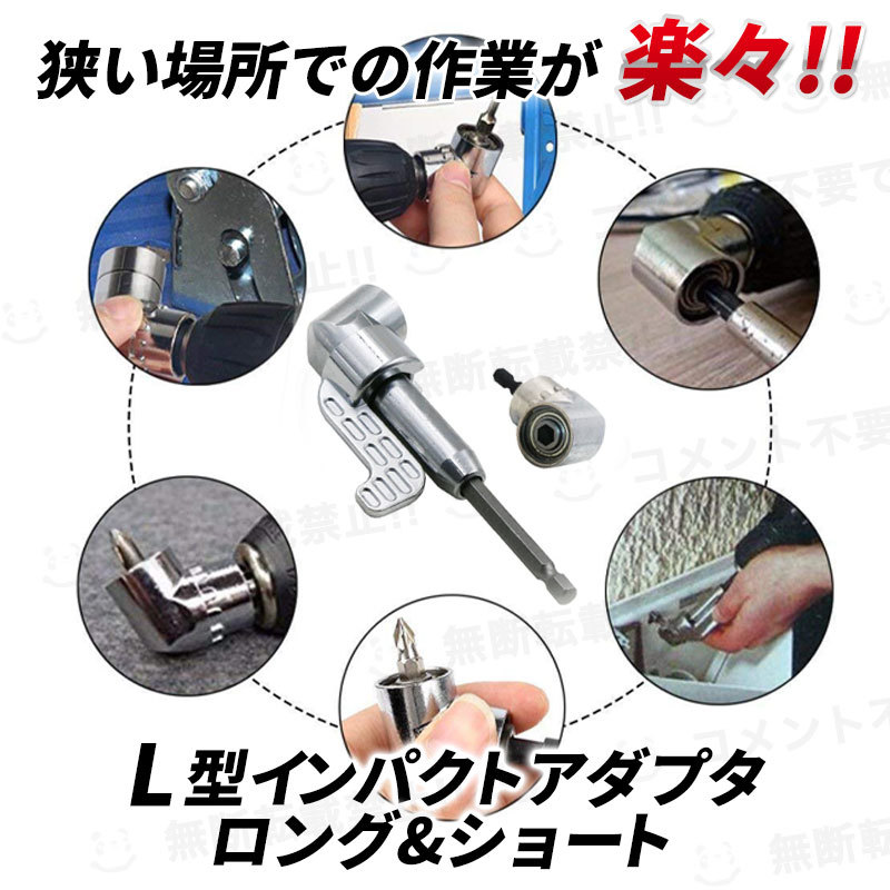 L型 アングル 電動ドライバー アダプター ソケット 2点セット 延長 ドリルビット インパクト 六角軸 レンチ 工具 DIY | |||