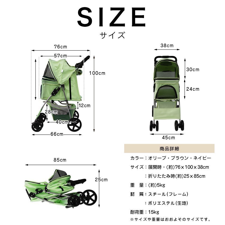 | お散歩デビューやシニア犬の介護におすすめです! 折り畳み式ペットカートです。カラーはネイビーになります ハンドルレバーを上げるだけで簡単に展開し、すぐに使用できます。 軽量タイプなので女性の飼い主さんでも安心です♪ 折り畳みもボタンを押して回すだけの簡単操作です。 4輪タイプなので安定感は抜群、ワンちゃん猫ちゃんも安心です。 前輪は小回りの利く360°回転ダブルタイヤなので運転もスイスイ! 飼い主さんにもペットにも嬉しい商品です! 【商品仕様】 カラー:ネイビー サイズ ・本体サイズ(約):76×100×38cm ・折り畳み時(約):25×85cm 重量(約):5kg 耐荷重(約):15kg 材質:スチール(フレーム)/ポリエステル(生地) ( ペット用カート 犬のカート ドッグカート 小型カート 3輪カート お散歩カート 犬用カート 犬用バギー 犬用キャリー 猫用キャリー ) | ■発送・配送・代引き料金について |