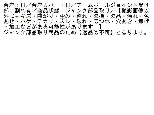 | 商品情報 | 台座:付/台座カバー:付/アームボールジョイント受け部:割れ有/商品状態:ジャンク部品取り/【撮影画像以外にもキズ・曲がり・歪み・割れ・欠損・欠品・汚れ・色あせ・ハゲ・テカリ・スレ・破れ・ほつれ・穴あき・焦げ・加工などがある可能性があります。】 | ||