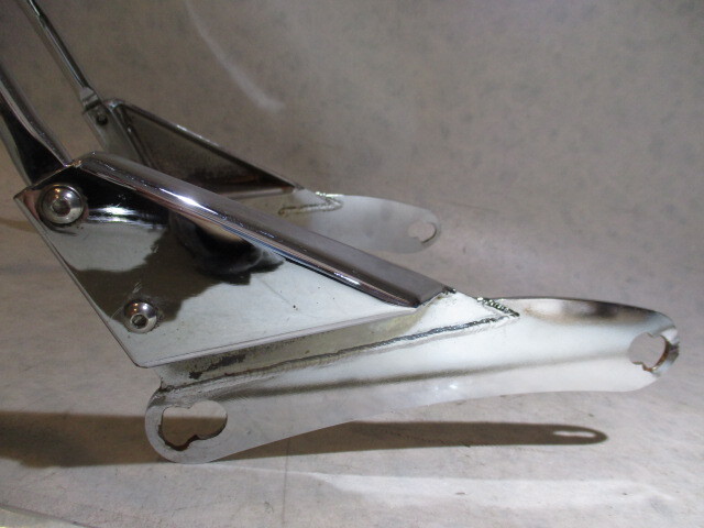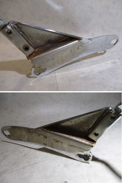 中古のもので、メーカーは不明です。 バー部分は多少のくすみやスレ、うっすら点サビ始まりなどがありますが、あくまで目視で曲がりは無く見えます。 ステー部分はサビ変色があり、マウント穴が加工されています。 パッドはくすみや圧迫痕があり、下部に切れがあります。 パーツ入手の為把握できる現状は上記の通りで、あくまで目視の判断です。商品は画像のものがすべてで、ネジ等付属品は画像の通りです。 ステーのピッチが約213㎜から約235㎜に加工されていますので、おそらくドラッグスター1100かドラッグスター250辺りで使用されていたものと思いますが、詳しい車種や年式は不明です。 画像をよくご確認のうえ、サイズ等を参考に、活用してください。 送料無料(北海道、沖縄県、離島の方は除く)でこの価格での落札です、お得なものだと思いますよ! d バラして発送します。 |