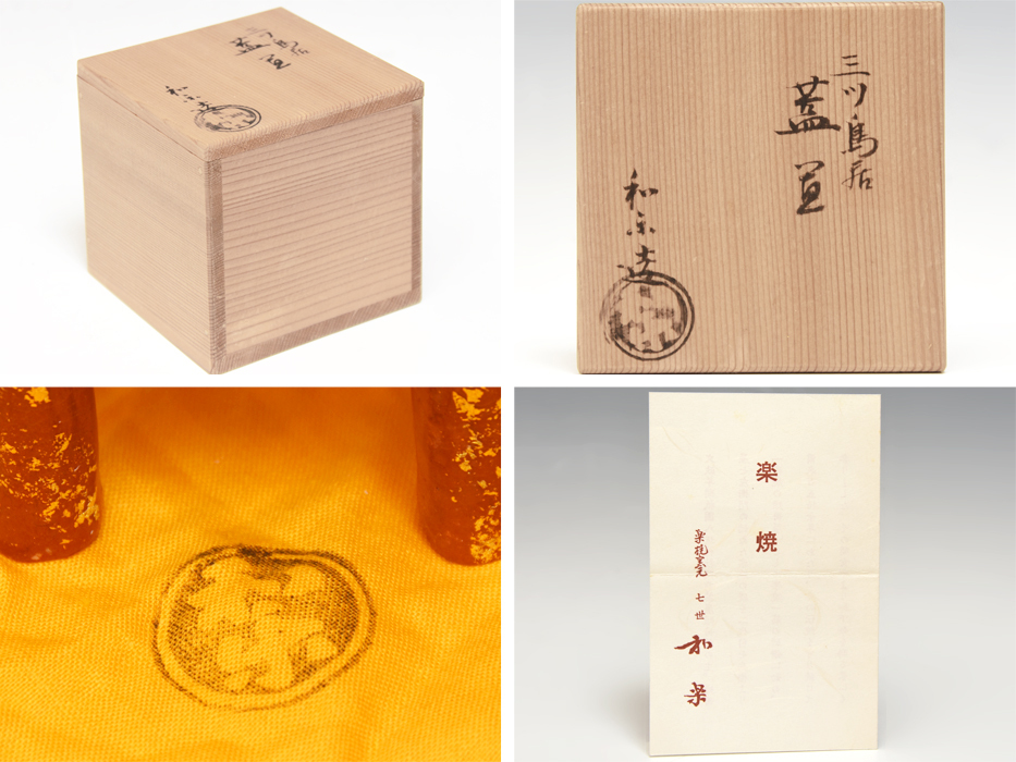 川嵜和楽 (造) 三ツ鳥居 蓋置 共箱 共布 しおり 茶道具 陶磁器 |