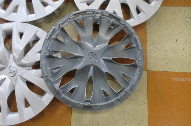 2年ほど前にヤリスを新車購入し、納車前にディーラーさんにて純正アルミホイールに交換してもらって以来、ずっと無人の部屋に置いておりました。よく見ればキズがあるかもしれませんが、未使用とさせていただきます。ノークレームノーリターンでお願いいたします。素人ですので梱包、不十分な感じになるかもしれませんが、よろしくお願いいたします。
