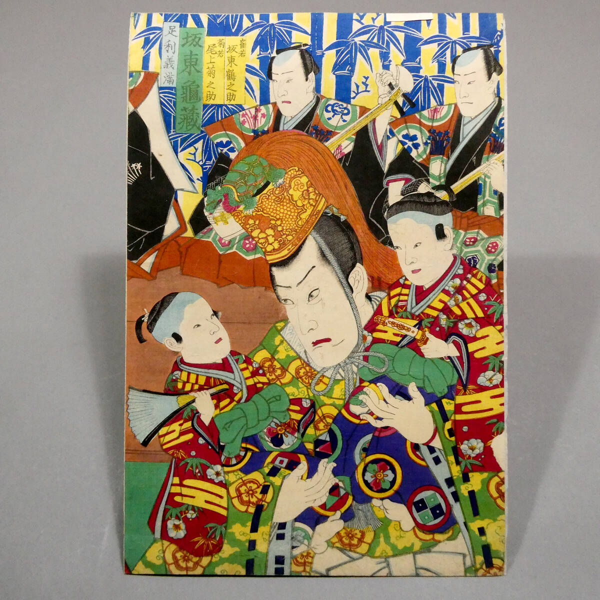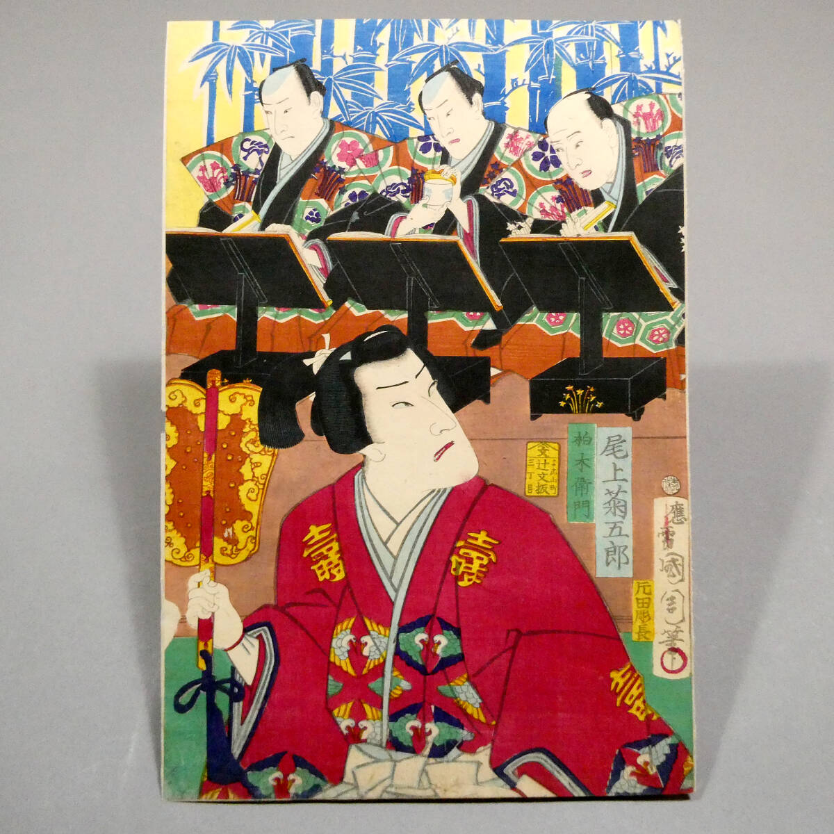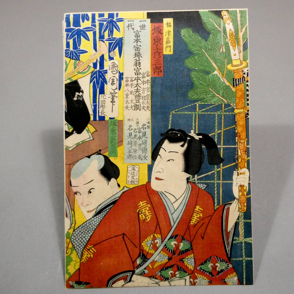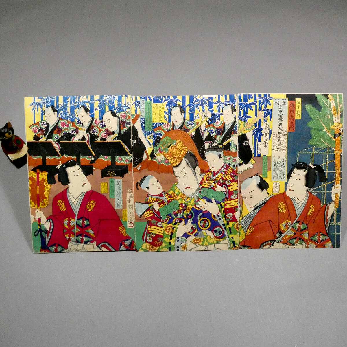 ■ 希少! 豊原国周 明治初年 木版浮世絵 役者絵 3枚続揃い 「一世一代富本宝珠翁富本太夫豊洲」 ■