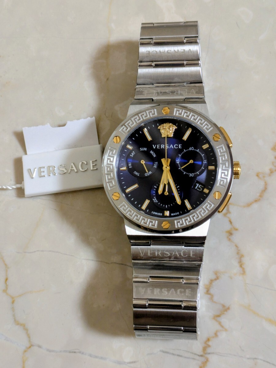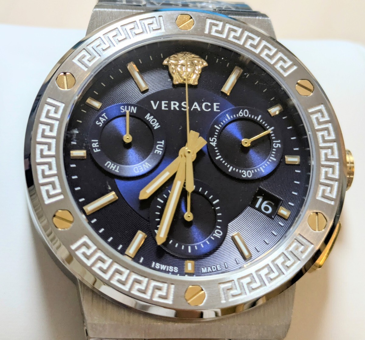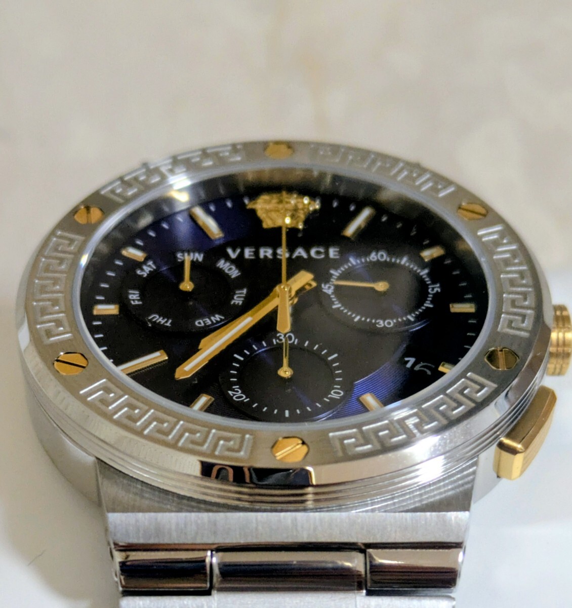 VERSACE ヴェルサーチェ GRECA LOGO CHRONO グレカロゴクロノ 腕時計 VEZ900221 メンズ ブルー&シルバー| 出价者 | 信用 | 价格 | 时间 |