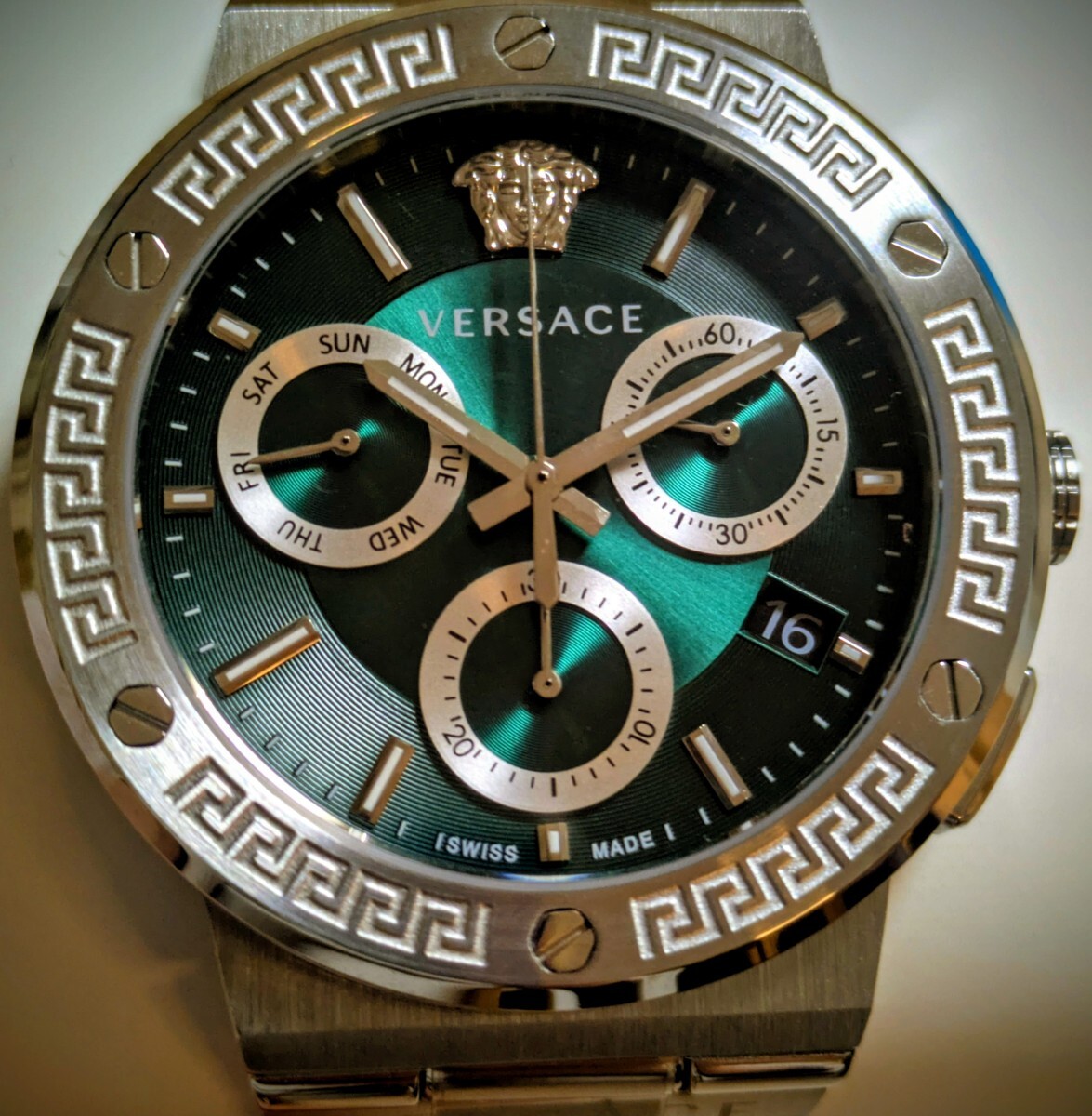 VERSACE ヴェルサーチェ GRECA LOGO CHRONO グレカロゴクロノ 腕時計 VEZ900121 メンズ グリーン&シルバー| 出价者 | 信用 | 价格 | 时间 |