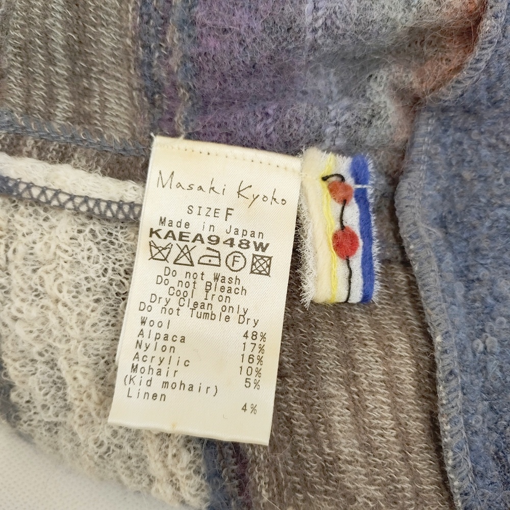 | 品質表示 | ウール48% アルパカ17% ナイロン16% アクリル10% モヘア(キッドモヘア使用)5% 麻4% |