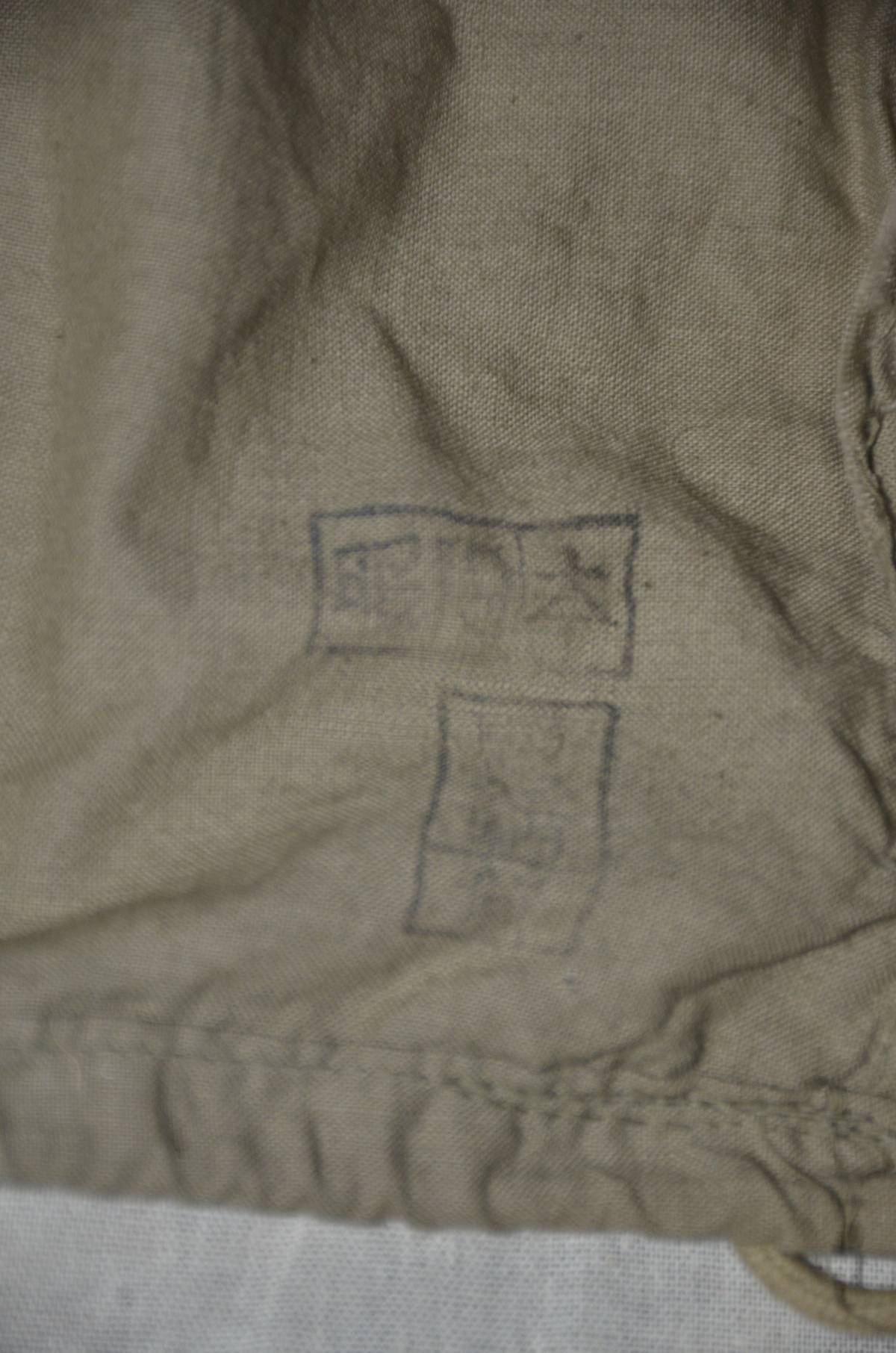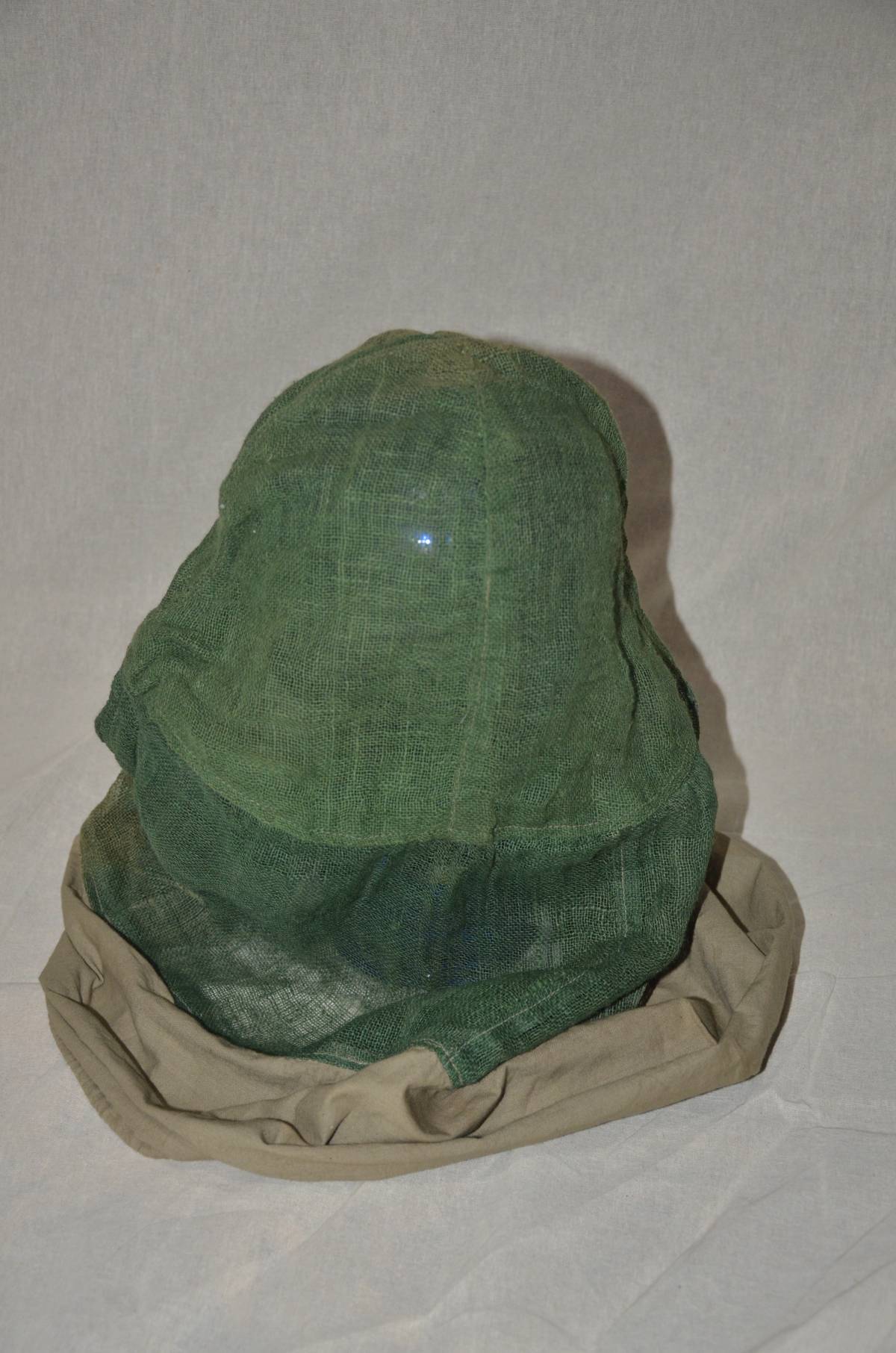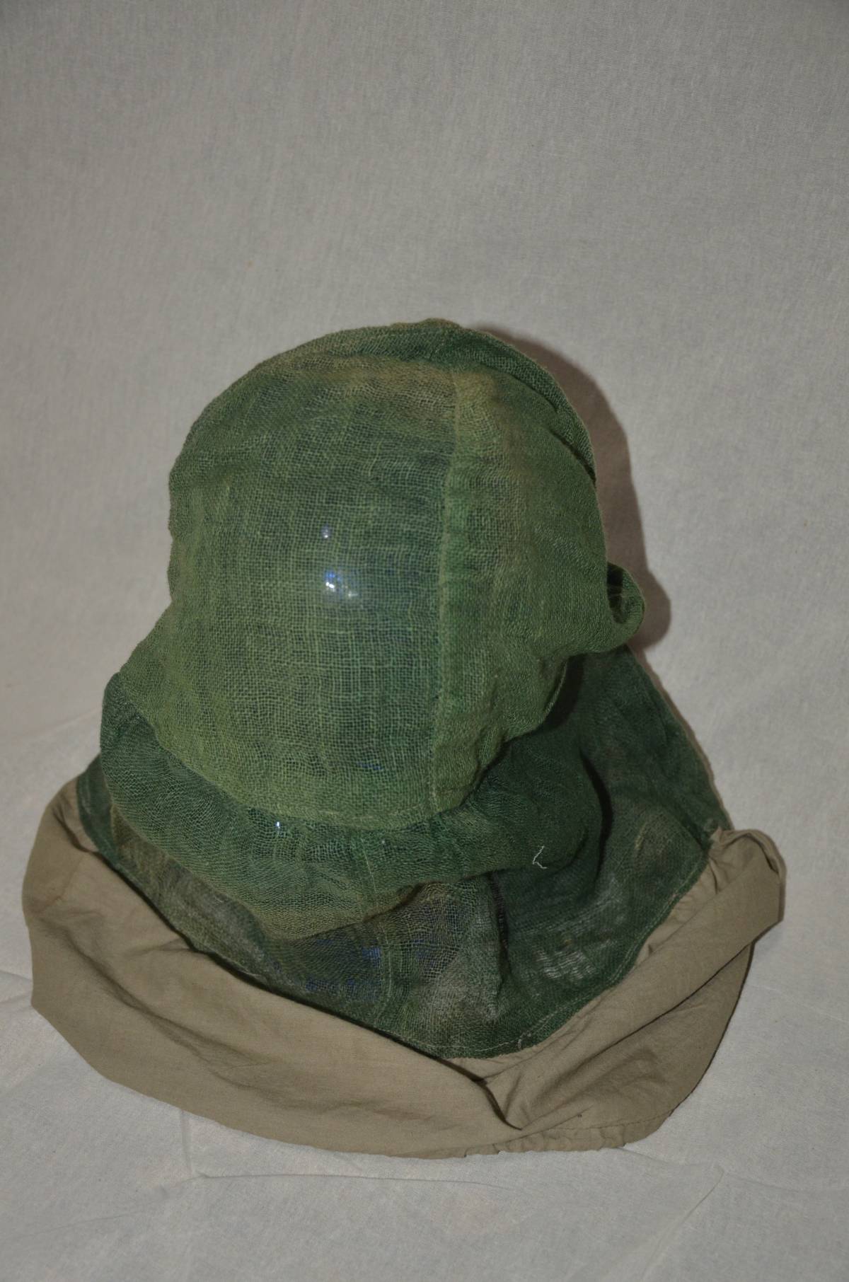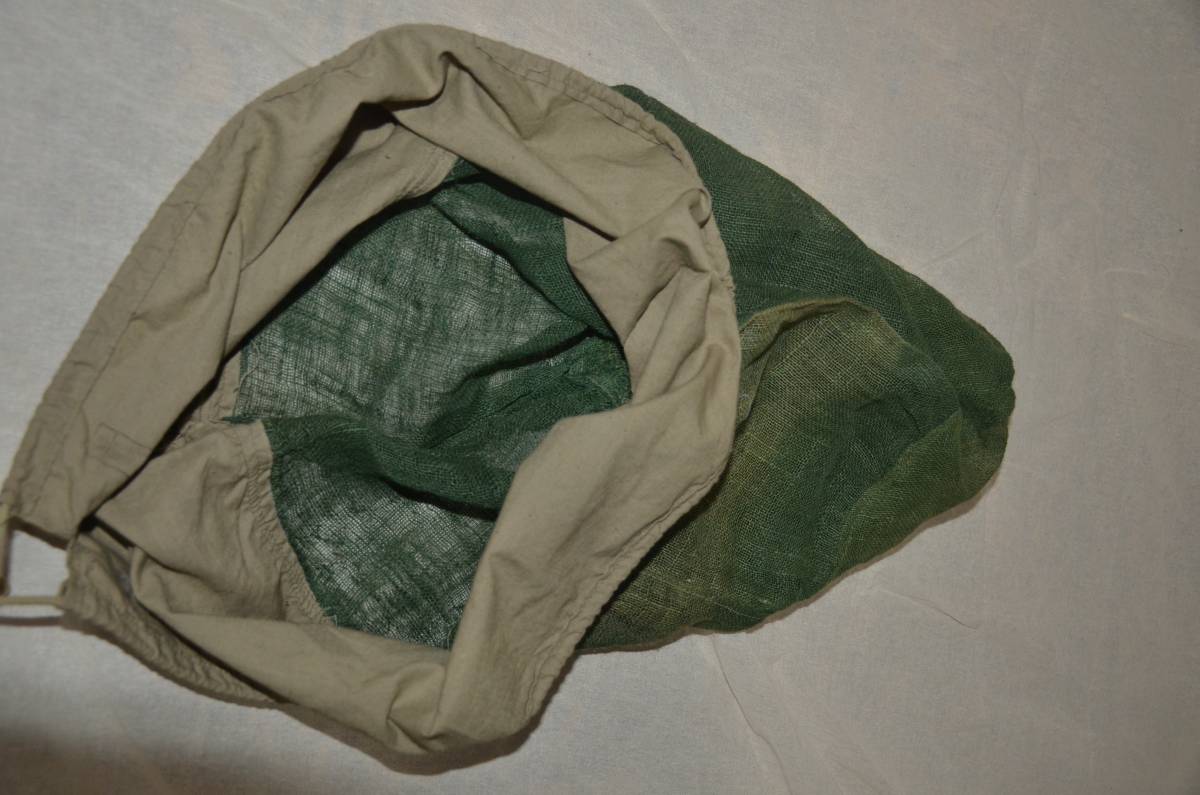 防蚊網は対ソ戦を想定し、国境の湿地地帯の蚊を防ぐために開発されました。ヘルメットの上から着用しました。三十年ほど前の夏、ソ満国境の虎頭要塞戦友会の方と国境地帯に入りました。満州の蚊は、日本のヤブ蚊の二倍くらいあり、前を歩く人に数十匹たかっているのか、肉眼で見えました。私も同数が攻撃してきていることになります。日本の防蚊スプレーも全く利かず、Gパンの上から刺してきます。数十か所刺されましたが、現地の薬局からベニバナ油を用意され、「ほんとに利くのか」と不安でしたが、「ムヒ」の様にすぐに治りました。サイズは、布部が46センチ×17センチ、網分が45センチ×41センチです。検定印は、昭和十九 本廠検定と入り、状態は未使用と思われます。本文下の追加写真もご覧ください。ヤマト運輸宅急便で、全国一律700円でお送りさせていただきます。