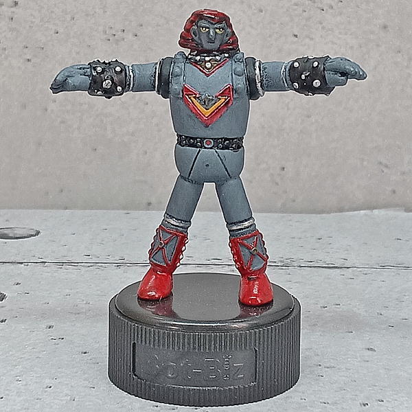 □ラナの横山光輝ワールドBot-Bizのジャイアントロボの通常彩色タイプです。フィギュア部は5センチくらいの大きさです。 |