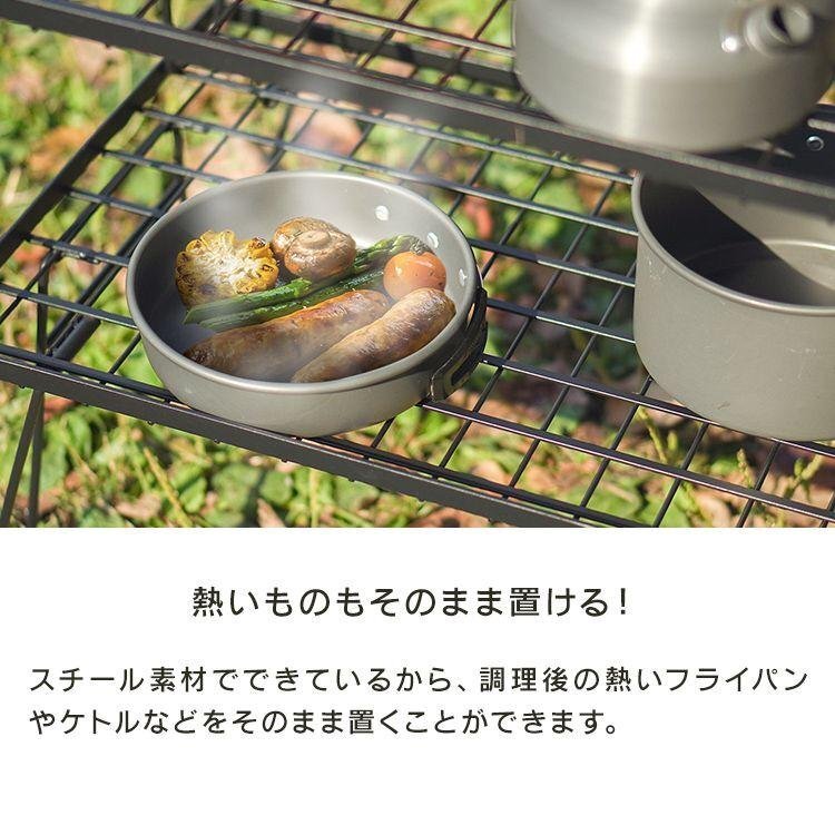 スチール製で熱に強いので、調理後の熱いフライパン等を直接置いても大丈夫です!