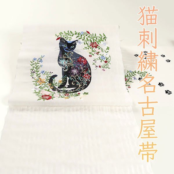 | ◆タイトル◆ | 和遊館 ONK2903 西陣織 猫 ネコ ねこ 刺繍 九寸 名古屋帯 オールシーズン |