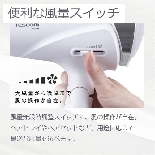 | ■■■■■■■■■■■□□□■■■■■■■■■■■□□□■■■■■■■■■■■□□□■■■■■■■■■■■□□□ (^-^*)/★私のオークションにようこそ★(^-^*)/ ■カラーホワイト 2025年8月購入証明書ありますのでメーカー受けられます。 万が一故障などの際は落札者様よりメーカーご連絡して頂き保証受けられてください。 仕様 】 ■本体寸法:高さ / 237mm 幅 / 235mm 奥行き / 101mm (大風圧フード付き) ■本体質量:685g(大風圧フード付き) ■消費電力:1400W ■付属品:大風圧フード ・セットフード ・クイックコードバンド ■スイッチ:切替スイッチ「HOT - COOL - OFF」・風量無段階調整スイッチ ■折りたたみ:○ ■温風温度:95℃(周囲温度30℃の場合。HOT - 風量最小~中使用時)、85℃(周囲温度30℃の場合。HOT - 風量最大使用時) ■騒音値:72dB(HOT - 風量最大使用時) ■風量(m3/分):最大:2.5m3/分(HOT - 風量最大使用時)、最小:1.4m3/分(HOT - 風量最小使用時) ■搭載イオン:プロテクトイオン ■ラク抜きプラグ:○ 【 説明 】 ■1大風量 業界最大級※4の2.5m3/分※52大風圧 従来機種※6から138%にUP3ハイパワー1400W 大風量でも暖かい風で快適ドライ ■乾燥や髪摩擦による静電気の発生が、大風量ドライヤーの課題。テスコム独自のプロテクトイオンが大風量ドライヤーの課題を解決し、ワンランク上の美髪に導きます。 ■美しさを印象付ける大きな要素が ”髪のツヤ”プロテクトイオンは髪のツヤめきをUPします。 ■多くの女性が悩む髪の広がり。プロテクトイオンは、プラスイオンとマイナスイオンが髪に働いて、髪の広がりの一因となる静電気を抑制。髪の広がりをおさえます。 ■1965年の創業以来、テスコムが製造開発してきた業務用ドライヤーNobbyは、高い性能からサロンシェアNO.1※1を獲得。テスコムの家庭用ドライヤーには、その技術力が生かされています。 ■温風と冷風を一定間隔で自動切換することで、髪の表面温度を適温に保ち、髪ダメージの一因となる熱変性を抑制します。 ■無段階調整スイッチで、風の操作が自在。ヘアドライやヘアセットなど、用途に応じて最適な風量を選べます。 ■快適にお使いいただくには、定期的なお手入れも重要。埃の溜まりがちな背面のメッシュを簡単にお手入れできます。 ■ドライに特化した大風圧フードと、ヘアセットに便利なセットフードが付属します。 発送方法 ヤマト運輸の宅急便で発送です。 福岡県からの発送になります。 配達日指定 時間指定できます。 発送後追跡番号ございます。 ■迅速・丁寧なご連絡、気持ちの良いお取引になる様心掛けております。どうぞ宜しくお願い致します。 ■諸事情により、オークションを休ませて頂く場合がございます。 その際は自己紹介欄に予定等を記入させて頂きますので、ご入札前に必ずご確認をお願いいたします。 ■細部までチェックし表記(画像・説明)するようにしていますが、万が一見落としが発生する場合もございます。大きな見落とし等は最後までしっかり対応(返金・返品)させて頂きますので、安心してご入札下さい。 m(_ _)mそれでは皆様よろしくお願いします。m(_ _)m | ||