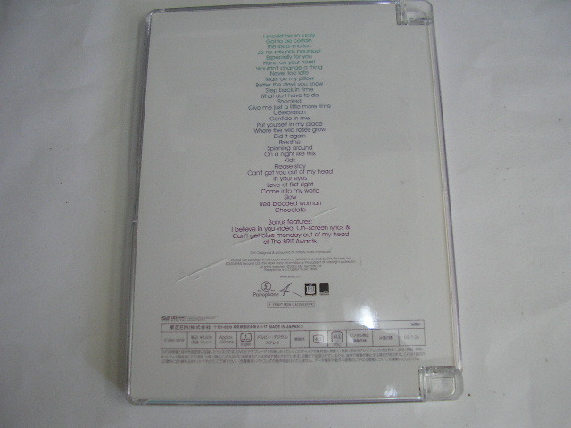 ☆DVD Ultimate Kylie Kylie Minogue (カイリー・ミノーグ) コンプリート・ベスト ☆国内正規品 ☆ユニバーサル ミュージック ☆TOBW-3209 ☆130分 87年のデビュー・シングルから、2004年のシザー・シスターズとの共演作「I Believe In You」までの全32曲のPVを収録したベストDVD。 ☆パッケージにヒビはありますが、 盤状態良品です。 ☆お取置きは、不可です。 ☆送料☆ ゆうパケットポスト 230円 |