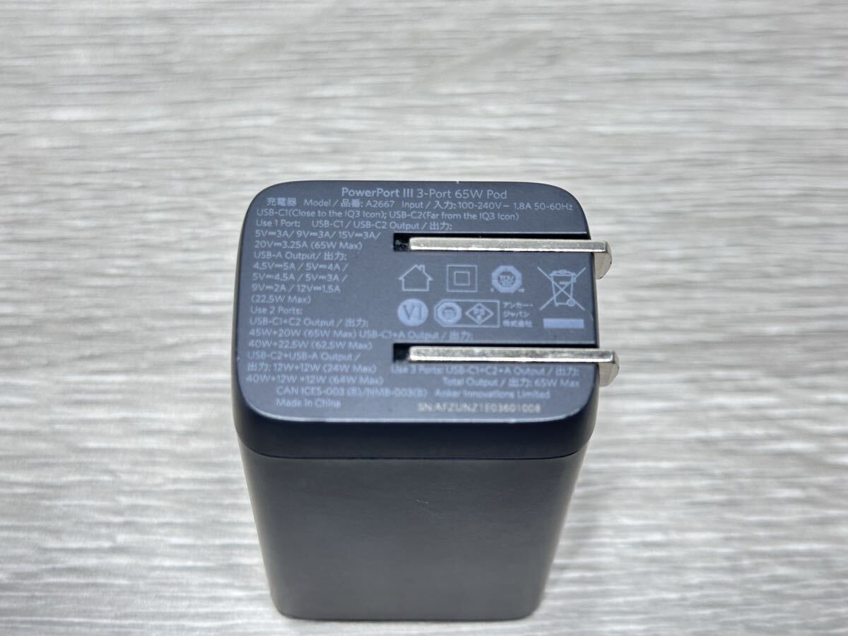 | ★ k.526 ANKER アンカー Anker PowerPort III 3-Port 65W Pod A2667 USB PD 充電器 USB-A USB-C 3ポート 急速充電器 ブラック ★ | |