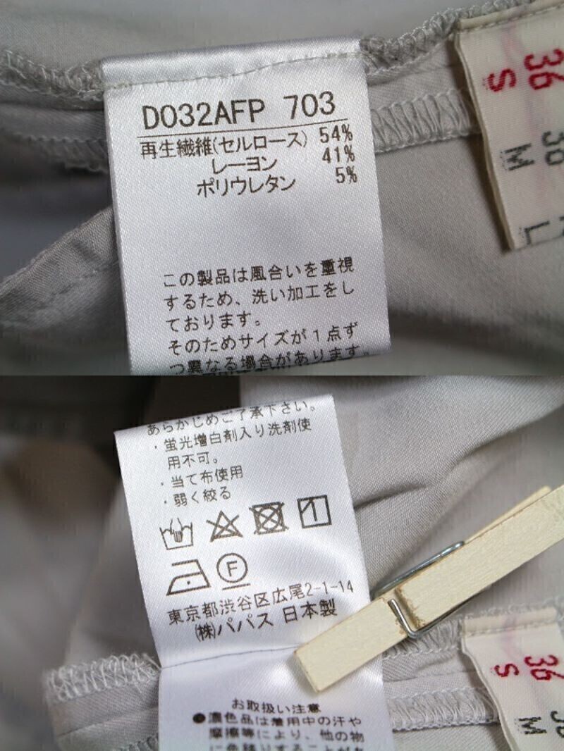 【表記サイズ】S/36 【カラー】グレージュ ※撮影時や画面の明るさにより色が変わる場合がありますのでご了承ください。 【実寸サイズ】ウエスト 69㎝・ヒップ 78㎝・前股上 29㎝ 股下 62㎝ 総丈 89㎝・わたり裾 29㎝ 裾幅 29㎝ ※平置き素人採寸の為、多少の誤差はご理解下さい。 【商品状態】 使用感はありますが目立った汚れやダメージ見られません。 ※一人で状態確認をしています。見落とす場合もありますのでご了承下さい。 |