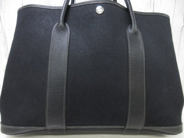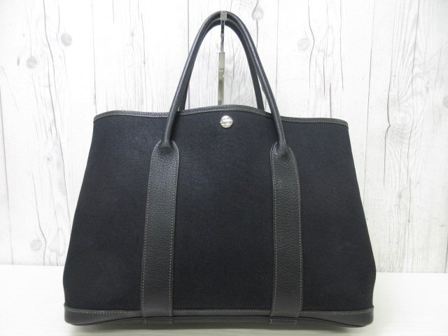 | 極美品 HERMES エルメス ガーデンパーティ 36 PM トートバッグ ハンドバッグ バッグ トワルオフィシエ×レザー 黒 A4収納可 92390Y | ||