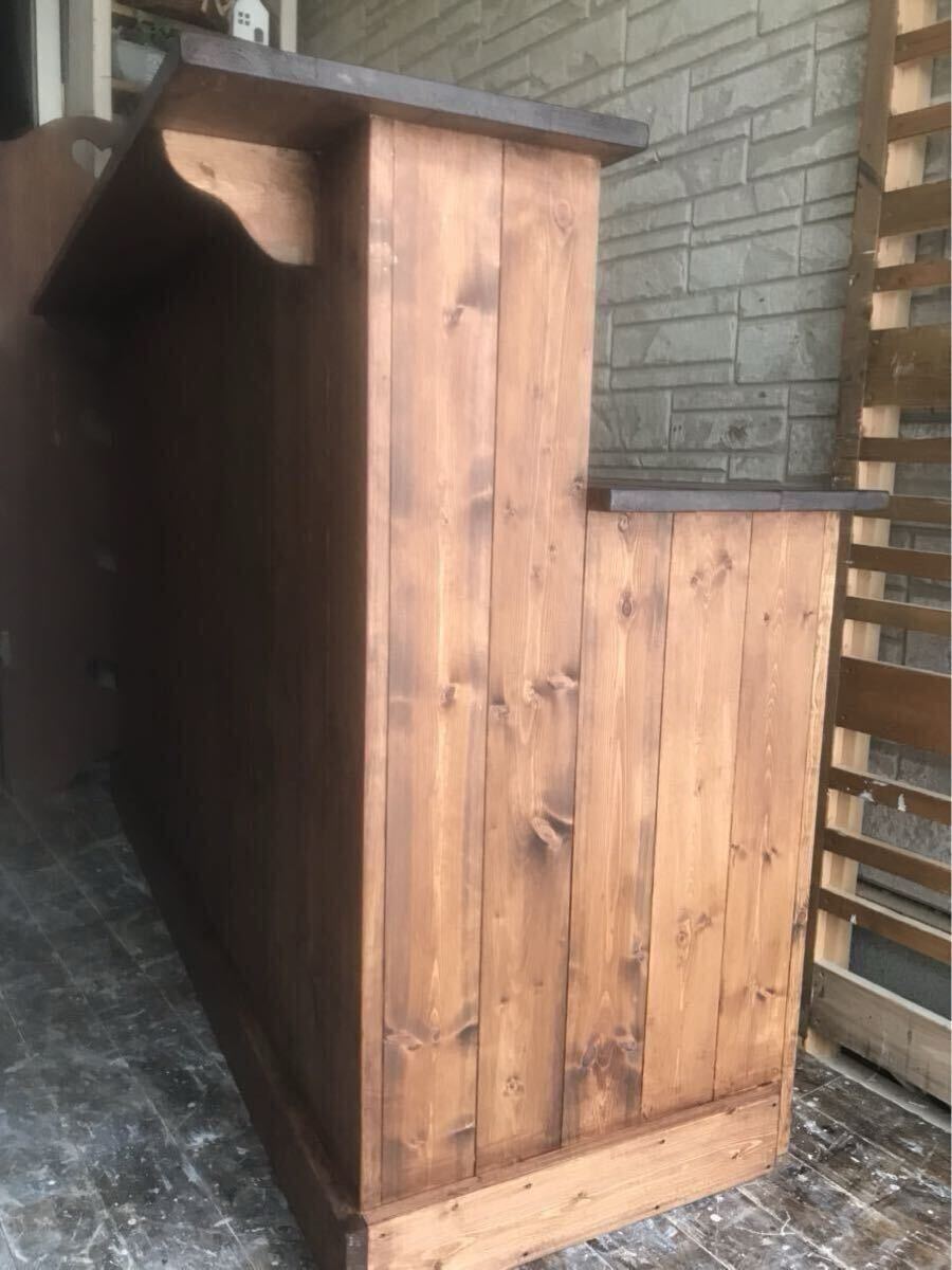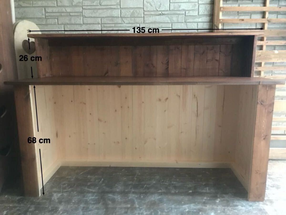 ![]() 商品説明落札後の制作になります。 通常5日間程度お日にち頂いておりますが状況により異なりますので納期のご希望はご入札前にご確認お願い致します またサイズ・カラー変更のご希望がある場合もご落札前にお知らせ下さいませ 高さ98㎝・幅135㎝・奥行67㎝のカウンターです 各部のサイズは画像にてご確認お願いします (記載サイズには多少の誤差がでます) 材質・カラーオイルステイン/ウォルナットブラウン(本体ワトコオイル仕上げ) (天板・棚板のみウレタンニス仕上げ) 厚み2cm・幅9cmのパイン材使用 発送方法/料金アートセッティングデリバリー/梱包を解いてご指定場所に設置(搬入経路のご確認をお願いします) お届け不可地域がございますのでご入札前にご確認お願い致します https://www.rakuten.ne.jp/gold/kaguichi-osaka/yamato_area.html 【Dランク・三片合計300㎝以内】 北海道(函館エリア)20700円 北海道(札幌・千歳エリア)24700円 北海道(道北・道東エリア)26400円 青森/19500円 岩手・秋田/18000円 宮城・山形/17000円 福島/15800円 茨城・栃木・新潟/14500円 東京・神奈川・埼玉・千葉・群馬/13200円 長野/12300円 富山・石川・福井・山梨・静岡・広島・愛媛・高知/11900円 愛知・徳島・香川・島根/11300円 滋賀・京都・大阪・兵庫・奈良・和歌山・鳥取・岡山・岐阜・三重/11200円 山口/12300円 福岡・佐賀・大分/14600円 長崎・熊本/15800円 宮崎・鹿児島/17000円 【納期に関して】 出来得る限りご希望に添えるよう努めさせて頂き 現在まで一度も期日に遅れた事はありませんが 万一、天災・事故等による運送会社の遅延 当方の作業上の事情による遅延により起きた損害に対して 補償は出来ませんのでご了承お願い致します コメントヒビや節抜けの無い木目のきれいな材料を選び天然木の特徴である伸び縮みも最大限抑える構造でしっかり丁寧に製作しておりますがご使用の過程で稀にヒビや歪みが生じるもございますのでご了承お願い致します(冷暖房の風や日光が直接当たる場所の設置はお避け下さい) 塗料は全て品質の高い物を使用しております。 天板等はニス保護剤塗装・その他は撥水性の高いオイルで仕上げておりますのでシミ汚れが防止できます どちらの品物も化粧板家具とは違い大変しっかりしていますのでメンテナンス次第で末永くご使用いただけます。補修・塗り替えが簡単な様に仕上げておりますので必要となった時は塗料や用具・作業方法についてなどお問い合わせくださいませ ![]() |
