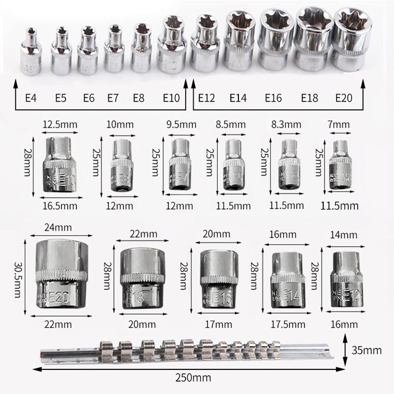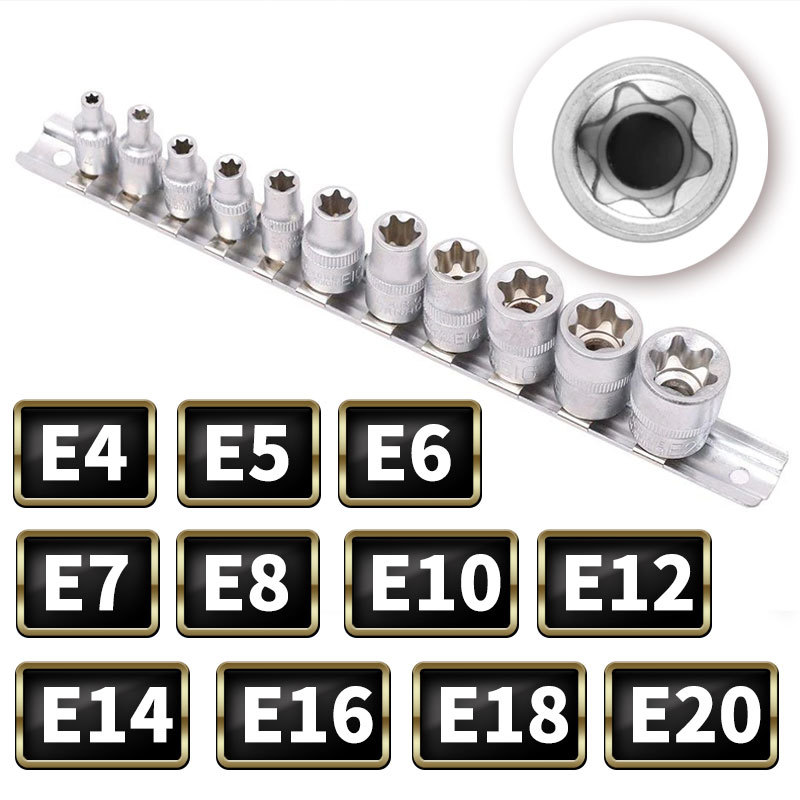 E型トルクスソケット 11点セット E4 E5 E6 E7 E8 E10 E12 E14 E16 E18 E20 星型 花型 レール ホルダー E型 トルクス ソケット レンチ | |||
