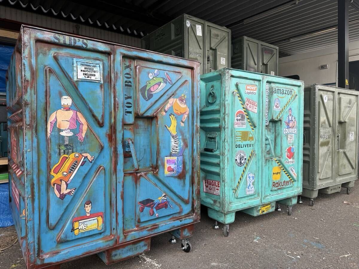 | 商品説明 | アメリカ軍放出品のコンテナBOXをリユース&カスタマイズして作ったミニコンテナBOX『ARMORED CUBE』1台の販売となります。 軍用の頑丈な収納BOXですので玄関先に設置して宅配BOXとして、お庭に設置してお洒落なガーデン倉庫として、暴風雨にも負けないヘビーデューティーなアーモードキューブです。 開閉レバー部分に南京錠を掛けられる穴も開いていますのでセキュリティ対策も可能です。ダイヤル式南京錠と組み合わせれば、やはり宅配BOXですね。 本体重量が80㎏と少々重量がありますので自在キャスターを追加装備、移動が楽々できます。また、設置用にアジャスターも追加装備しています。水平設置や据え付けが簡単にできます。 外装素材はFRPゲルコート ダークグリーン色 本来の軍用色ダークグリーンや現地でのアメリカ軍によるステンシル文字、その他デカールなどそのままの状態を保つたままクリアー塗装を施しています。従って軍基地での汚れもその物もクリアーコーティングされていますので、お洒落ととるか、汚れととるかは貴方次第です。 これらの追加装備はバイクガレージでお馴染みのDAINAO GARAGE FACTORYがバイクガレージ製作のノウハウを最大限に活かして作業していますのでご安心ください。 当商品はリユース&カスタマイズしています。ご自身でDIYカスタムがしたい。アメリカ軍放出品のそのままの状態をご希望の方は、出品リストよりストック状態のものを入札ください。 サイズ:幅101㎝×奥行121㎝×高さ130㎝(キャスター含む) 追加されている装備:自在キャスター4か所(2か所ロック付き) 据え付け、水平だし用のアジャスター、外装保護用のクリアー塗装。 その他オプション:棚(1枚10,000円)、首長南京錠(5,000円)、外装オリジナル色で塗装1色+クリアー塗装(18,500円)、外装デザイン装飾要相談(38,000円~) ※オプションは本体落札後にご相談ください。 |