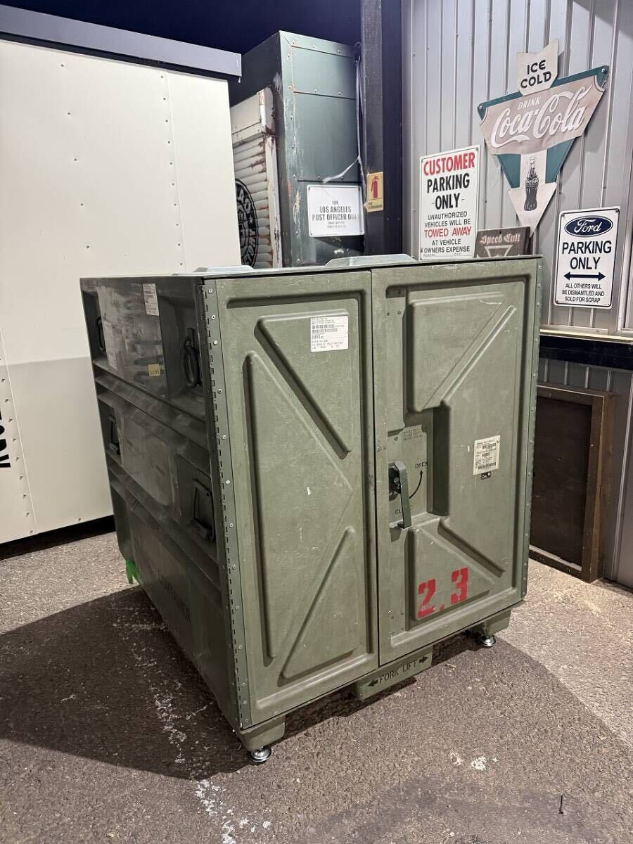 | 注意事項 | あくまでもアメリカ軍放出品の中古を使用しての商品ですので、傷、汚れ、落書きなどがあります。 扉部分のゴムパッキンは十分機能していますが、通常の雨で有れば水が侵入することは有りませんが横向きの雨などには水が浸入する可能性が十分あります。 画像はイメージ画像です。実際の商品とは異なります。ステンシル、デカール、落書き、汚れ等の位置が違ってきます。 イメージ撮影用の為、棚、装飾品等は含まれません。 納期は完成品在庫があれば、即時発送いたします。完成品在庫が無い場合は発送までに少しお時間を頂きます。在庫情報はご質問ください。 上記の事をご理解いただける方のみ入札をお願い致します。 現品、展示品の見学は可能ですのでお気軽にDAINAO GARAGE FACTORYまで相談ください。 |